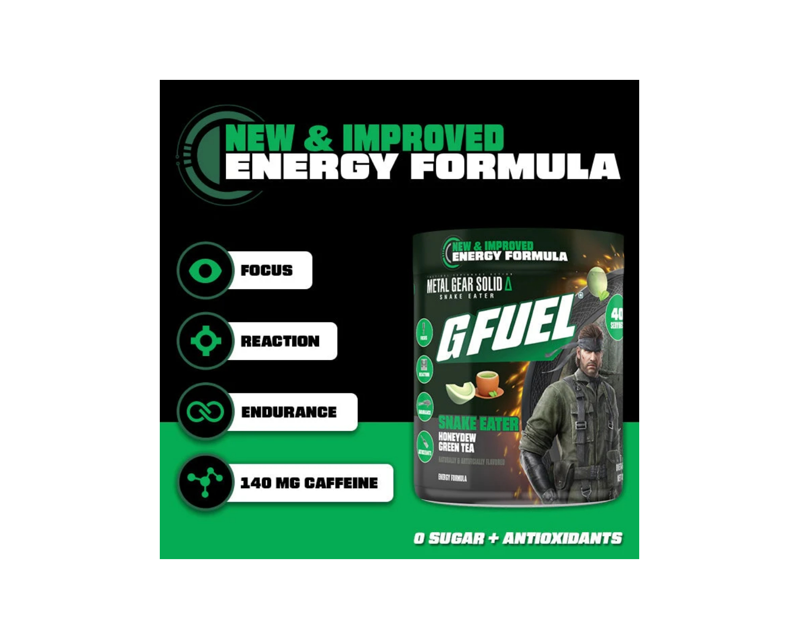 Snake Eater G FUELilta yhdistää virkistävän maun Honeydew vihreää teetä. Se tarjoaa 40 annosta ja sisältää kofeiinia 140 mg per annos, mikä antaa sinulle tarvittavaa tukea intensiivisten treenien läpi pääsemiseen.Tuote on suunniteltu tarjoamaan vakaa energialataus ilman lisättyä sokeria, mikä tukee sekä keskittymistä että kestävyyttä. Makuprofiili yhdistää sitruunajuoman makeuden hienovaraiseen jääteen vivahteeseen, ja se on suunniteltu tarjoamaan raikas ja piristävä kokemus.