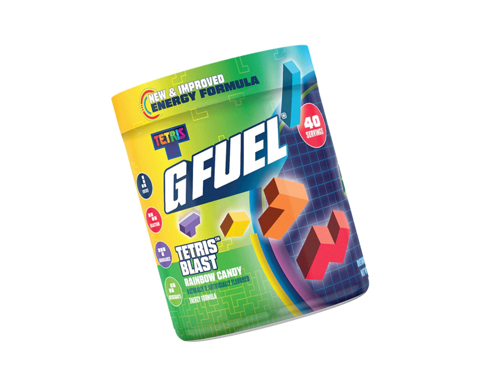 Tetris Blast 2.0 G FUEL:lta tarjoaa 40 annosta, joissa on 140 mg kofeiinia per annos.Juoma ei sisällä lisättyjä sokereita ja sen makuprofiili on Rainbow Candy, mikä tuo hedelmäisen ja happaman kokemuksen.