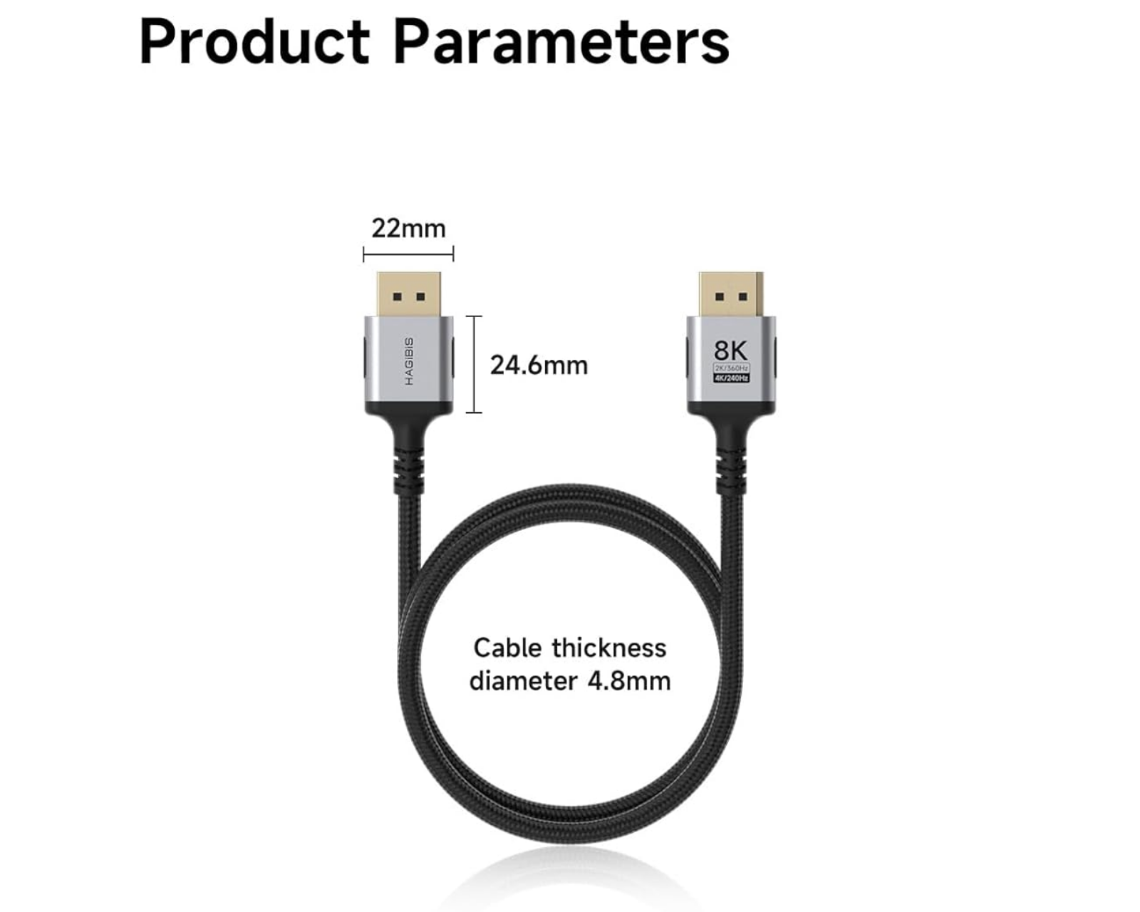 Hagibis 8K DisplayPort-kaapeli on huipputehokas kaapeli, joka tukee resoluutioita jopa 8K(7680x4320)@60Hz ja 4K@240Hz. Se on tarkoitettu pelaajille ja käyttäjille, jotka etsivät vakaata ja korkealaatuista kuvaa. Kaapelin siirtonopeus saavuttaa jopa 32,4 Gbps ja se tarjoaa tukee Dynaamista HDR:ää, mikä tekee väritason realistisemmiksi ja kirkkaammiksi.Kaapeli on rakennettu joustavalla, punotulla muotoilulla, joka tekee siitä kestävän ja taivutukselle vastustuskykyisen. 34AWG tinalla päällystetystä hapettomasta kuparista valmistetun ytimen sekä alumiini- ja grafiikkasuojan ansiosta kaapeli kestää signaalihäiriöitä ja takaa vakaan kuvakvaliteetin. Se on yhteensopiva useimpien grafiikkakorttien ja näyttöjen kanssa, joissa on DisplayPort, maksimoiden suorituskyvyn ilman lisäyksiä tai sovittimia, jotka voivat vaikuttaa signaaliin negatiivisesti.