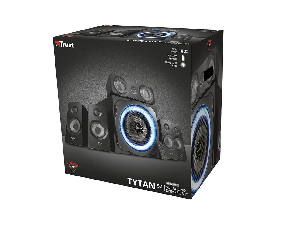 TRUST Gaming GXT 658 TYTAN 5.1 -kaiutinjärjestelmäTämä Trust Gaming GXT 658 Tytan 5.1 -kaiutinjärjestelmä antaa sinulle kaiken tarvitsemasi tehon parhaan mahdollisen pelikokemuksen saavuttamiseksi. Räjähdykset ja moottoreiden pauhu eivät ole koskaan kuulostaneet näin todelliselta. Kuuntele musiikkiasi ja katso elokuvia upealla äänellä, joka täyttää koko huoneen.