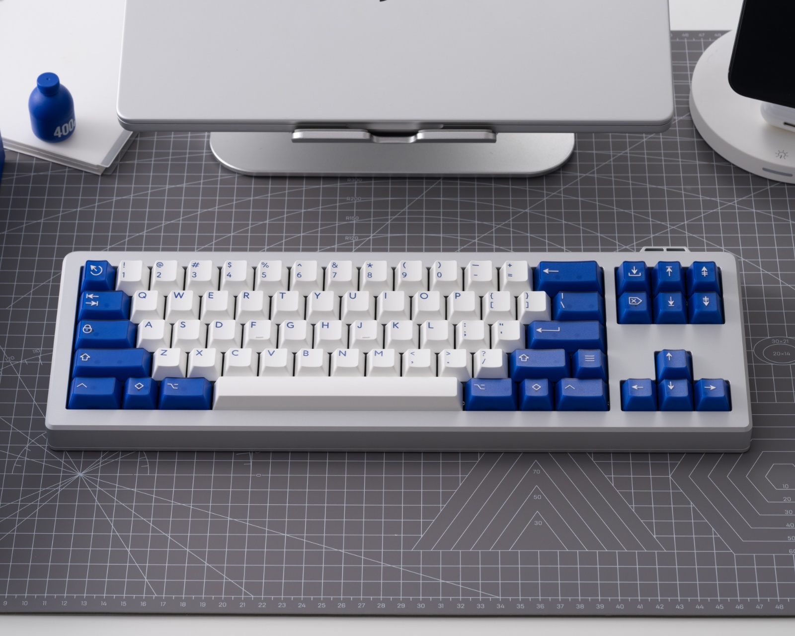PBTfans Klein Blue R3 on peruspaketti näppäinkansista KBDfansilta. Tämä tuote tarjoaa ainutlaatuisen esteettisen leiman International Klein Blue -värissä, joka on ikoninen sävy ranskalaiselta taiteilijalta Yves Kleinilta. Näppäinkansit on valmistettu ABS-materiaalista, jossa on semi-transparentti Cherry-tyylinen profiili. Ne on suunniteltu yhteensopiviksi Cherry MX -kytkimien sekä MX-tyylisten kloonien kanssa, mikä tekee niistä sopivia laajalle valikoimalle näppäimistöjä.Näiden näppäinkansien valmistusmenetelmä on doubleshot, mikä antaa korkean kestävyyden ja pitkäkestoisen värin ilman haalistumista. Tuote toimitetaan ABS-näppäinkansien säilytyslaatikoissa, joissa on suunniteltu kansi, mikä helpottaa säilyttämistä. On tärkeää huomata, että paketissa on vain näppäinkansi, ei näppäimistöä. Tarjottu deskmatin koko on 900 mm x 400 mm x 4 mm ±1 cm toleranssilla. Siinä on kestävä rakenne, ommellut reunat ja pehmeä kangaspinta, joka tarjoaa miellyttävän tunteen käytön aikana. Sen paino on noin 800 g, mikä tuo vakautta työpöydälle.