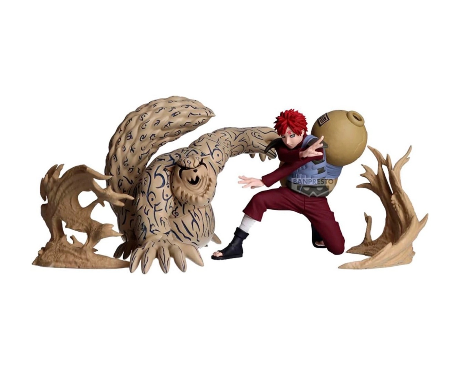 En keräilyfiguuri Bandailta, joka on inspiroitu suositusta anime-sarjasta Naruto: Shippuden. Figuuuri esittää Kazekage Gaaran, joka on kuvattu taisteluasennossa omalla allekirjoitus hiekka-jutsullaan valmiina käyttöön. Korkeudeltaan 17,01 cm oleva tämä yksityiskohtainen figuuri on tehty PVC:stä ja ABS-muovista, mikä antaa sille kestävän rakenteen ja vaikuttavan ulkonäön jokaisessa kokoelmaassa.Huolellisesti suunniteltu figuuri vangitsee Gaaran dynaamiseen asentoon, tuoden eloa kohtaukseen animesarjasta. Vibration Stars Plus -sarja on tunnettu yksityiskohdistaan, ja tämä figuuri ei ole poikkeus. Se ei ole nivelöity, mikä tekee suunnittelusta jatkuvan ja keskittyy kuvastamaan hahmon voimaa ja tyyliä. Mitat 20 x 10 x 15 cm ja paino 0,19 kg tekevät siitä helpon sijoittaa muiden keräilyesineiden joukkoon, ottamatta liikaa tilaa. Värikäs muotoilu houkuttelee sekä keräilijöitä että sarjan faneja.