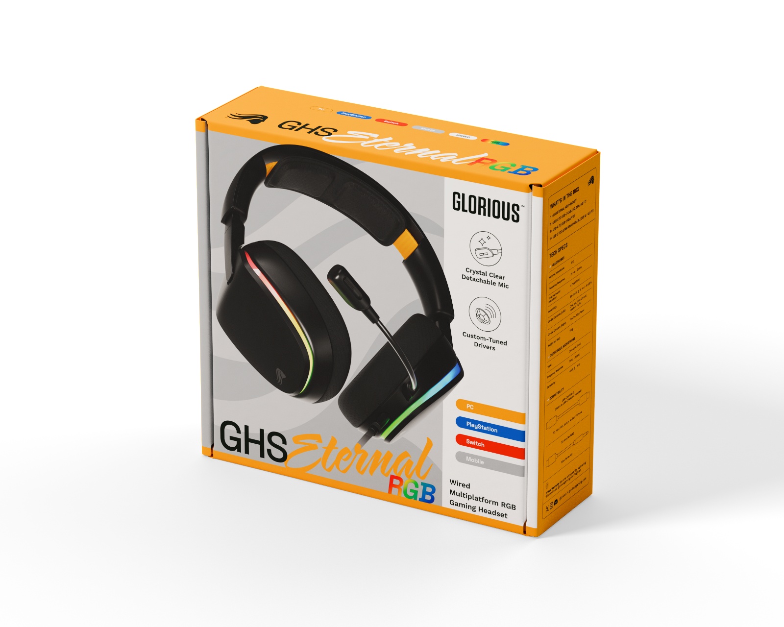 Glorious GHS Eternal RGB on langallinen pelikuulokemikrofoni Gloriousilta, joka on suunniteltu tarjoamaan korkealaatuista äänenlaatua ja mukavuutta pitkien pelisessioiden aikana. Siinä on räätälöidyt kalvot, jotka tarjoavat tasapainoisen äänikuvan, sekä irrotettava mikrofoni, joka varmistaa selkeän kommunikaation. Se liitetään USB-C:n ja 3,5 mm:n liitännän kautta ja on yhteensopiva useiden alustojen, kuten PC:n ja Xboxin, kanssa.GHS Eternal RGB:n rakennelaatu on korkea, ja siinä on vahvistettuja materiaaleja, jotka suojaavat intensiiviseltä käytöltä ja tarjoavat lisäkestävyyttä. Kuulokkeissa on muistivaahtotähtötyynyt ja säädettävät korvasangat, mikä parantaa mukavuutta pidemmän käytön aikana. Sisäänrakennettu äänenvoimakkuuden säätö ja mykistysnappi ovat helposti saavutettavissa ja tekevät säätämisestä sujuvaa pelin aikana. RGB-valaistusta voidaan mukauttaa Glorious CORE -ohjelmistolla, mikä mahdollistaa kuulokkeiden yhdistämisen peliasetelmaasi.