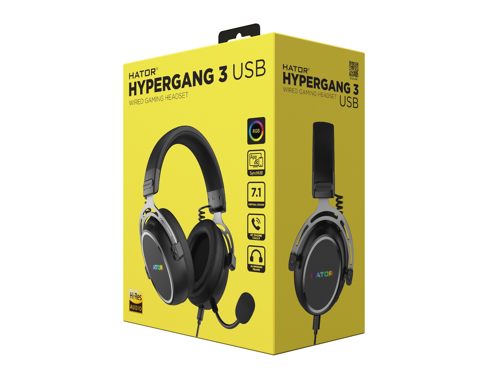 HATOR Hypergang 3 USB on langallinen headset Hatorilta, joka yhdistää edistyksellisen ääni teknologian käyttäjäystävälliseen muotoiluun. Varustettuna voimakkailla 53mm -elementeillä ja Hi-Res ääni sertifikaatilla, tämä laite tarjoaa yksityiskohtaisen äänen kokemuksen luonnollisilla äänenvivahteilla. Virtuaalinen 7.1 Surround Sound -teknologia tekee siitä ihanteellisen pelaajille, jotka etsivät immersiivistä ääni maisemaa pelatessaan.Hypergang 3 USB:n rakennelaatu on vaikuttava, jossa vahva rakenne takaa pitkäaikaisen kestävyyden. Proteiininahasta valmistetut korvatyynyt ja muistivaahto tarjoavat paitsi mukavuutta myös erinomaisen passiivisen melueristyksen. Eristetty elementtisuunnittelu minimoi äänen vääristymät, kun taas 24-bittinen DAC ja 32-bittinen kaksiytiminen DSP tarjoavat korkealaatuista äänen toistoa jopa 96 kHz:n näytteenottotaajuudella. Irrotettava korkeasensitiivinen mikrofoni mahdollistaa selkeän kommunikaation ja sen voi helposti poistaa joustavaa käyttöä varten. Sisäänrakennettu Bluetooth-toiminnallisuus mahdollistaa puheluiden vastaanottamisen puhelimestasi keskeyttämättä peli-elämystä.