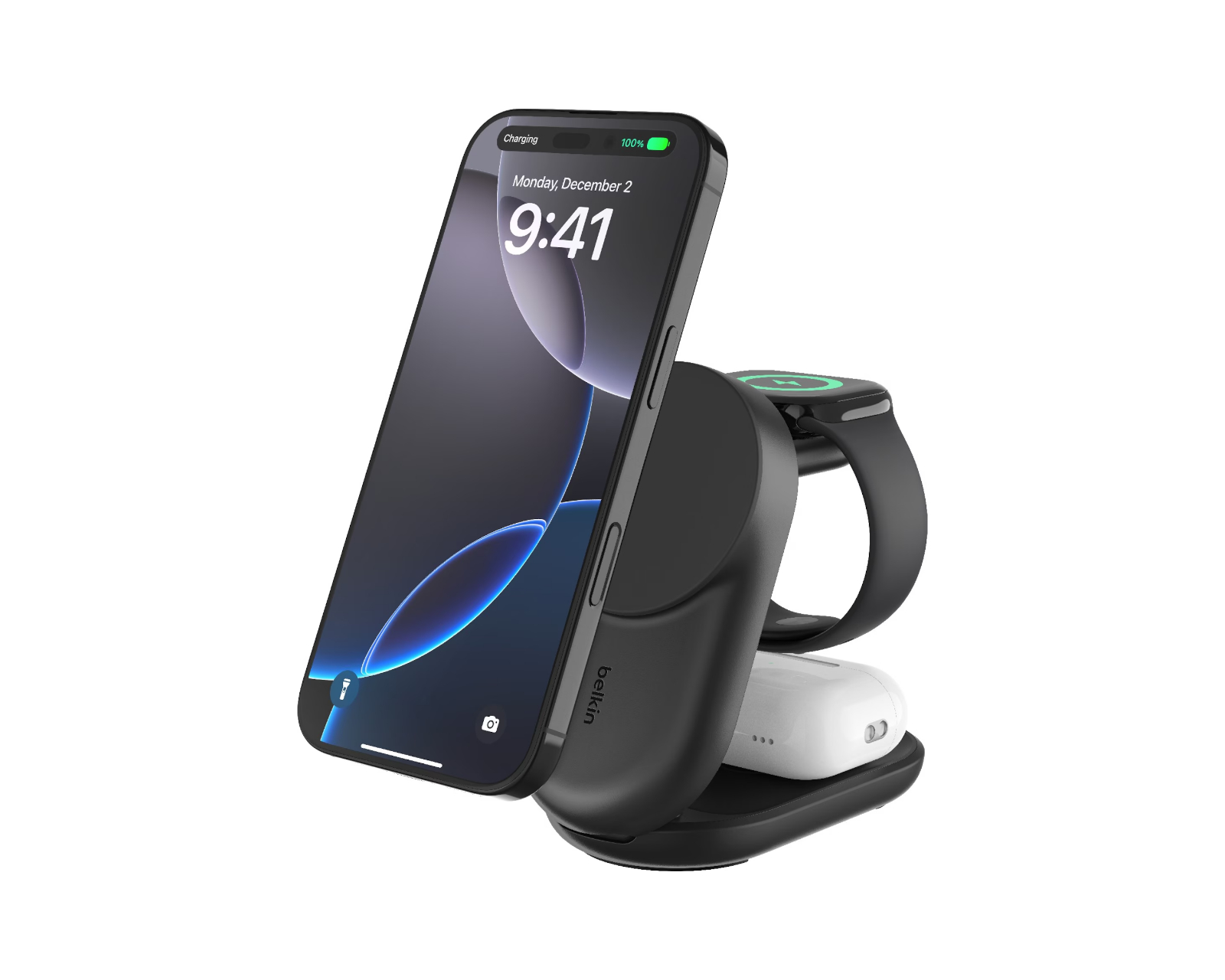 UltraCharge 3-in-1 Qi2 langaton laturi on Belkinin langaton laturi, joka tarjoaa kattavat latausmahdollisuudet. Maksimiteholla 25 W ja USB-C-virransyötöllä jopa 45 W, se on suunniteltu tehokkaaksi useiden laitteiden lataamiseen samaan aikaan. Laturissa on 1,5 m kaapelin pituus ja taitettava, kevyt muotoilu, joka tekee siitä ihanteellisen sekä kotiin että matkustamiseen.Laite toimii Qi2-teknologialla, joka mahdollistaa nopeamman langattoman latauksen. ChillBoostin, passiivisen jäähdytechnologian, avulla lämpötilaa vähennetään nopean latauksen aikana, mikä suojaa laitteidesi akkuja. Laturi voi esimerkiksi ladata iPhonen 0-50 % 29 minuutissa ja Apple Watchin, sarja 10, 0-80 % 30 minuutissa. Se tukee myös AirPodien lataamista jopa 5 W:n teholla. Liukuestopohja ja magneettinen snap-on-säätö varmistavat vakaan latauksen ja säädettävän kulman laitteiden näyttämiseksi sekä vaaka- että pysty-asennossa.