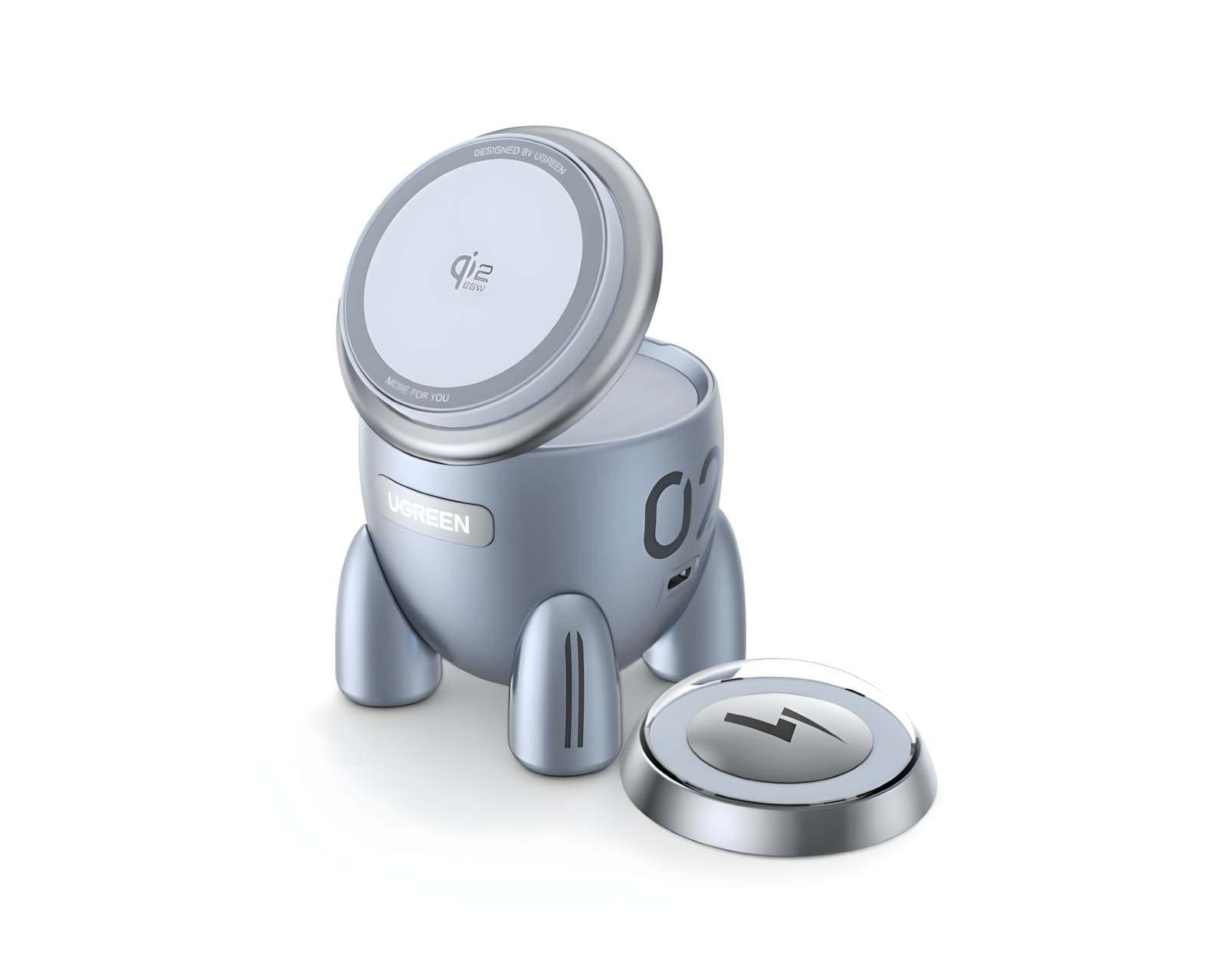 MagFlow Qi2.2 25W 2-in-1 Raketimagneettinen langaton laturi on langaton latausratkaisu UGREENiltä, joka tarjoaa sertifioitua Qi2-teknologiaa. Tämä laturi tukee MPP-protokollaa ja tuottaa jopa 25W, mikä mahdollistaa tehokkaan magneettisen langattoman latauksen iPhone 16 -malleille ja uudemmille (15W max iPhone 12 -15). 16 yhdistetyn N48H-magneetin rakenne varmistaa vahvan ja tarkan magneettisen liitännän, jonka kestävyys on jopa 7N luotettavan liitännän ja latauksen takaamiseksi.Uniikki rakettimuotoilu luo leikkisän ja koristeellisen elementin, samalla kun se tarjoaa nopeaa langatonta latausta säädettävällä kulmalla varustetun magneettisen pinnan kautta. Futuristiset jääsiniset LED-valot antavat selkeän osoituksen lataustilasta yhdellä silmäyksellä. Ominaisuuksiin kuuluu 9.0V-3.0A USB-C (IN) -sisääntulo ja jopa 30W:n kokonaislangaton latausteho, mikä tekee siitä käytännöllisen ratkaisun Apple-tuotteiden käyttäjille. Pakettiin sisältyy 2-in-1 magneettinen langaton laturi, 1m USB-C - USB-C latauskaapeli sekä käyttöohje.