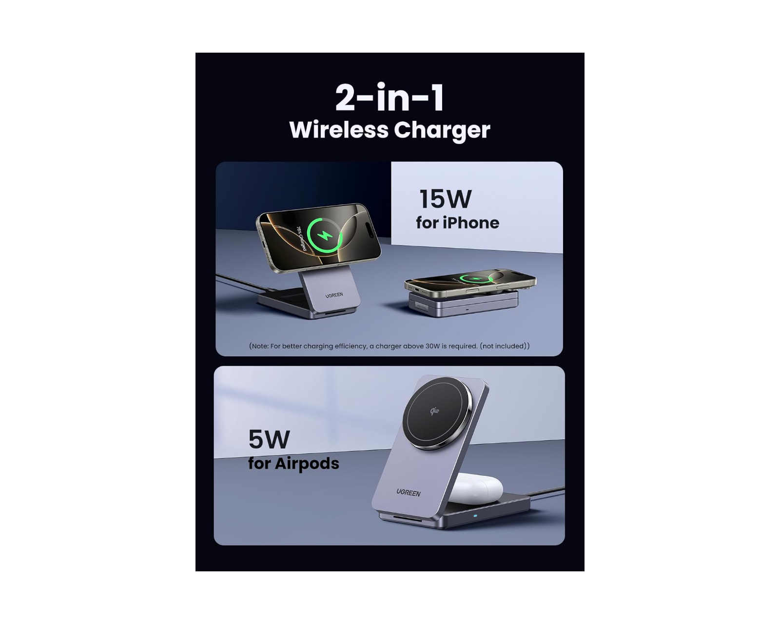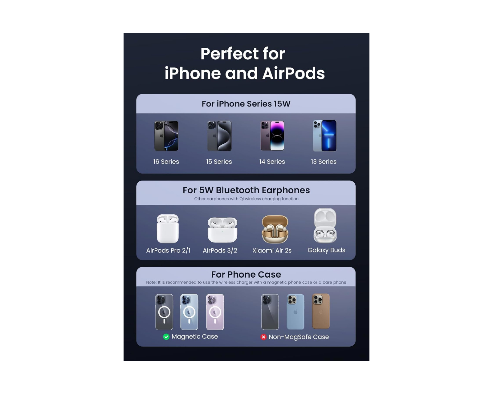 Qi2 15W on 2-in-1 langaton laturi, jossa yhdistyvät tehokkuus ja mukavuus. Sen maksimiteho on 15 W iPhoneissa ja 5 W AirPodsissa, joten se sopii täydellisesti useiden laitteiden lataamiseen samanaikaisesti. 20 W:n maksimitehonsa ansiosta se takaa laitteidesi nopean ja turvallisen latauksen kotona, toimistossa tai tien päällä. Sen kompakti ja tyylikäs muotoilu tekee siitä täydellisen ratkaisun nykyaikaiseen langattomaan lataukseen.