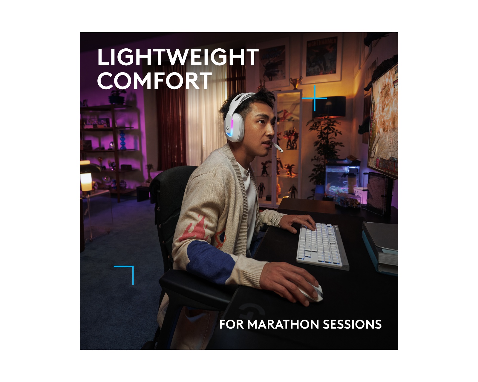 Astu jokaiseen peliin omana itsenäsi Logitech G522 Lightspeed Wireless Gaming Headset -kuulokkeiden avulla. Tämä ei ole vain kuulokemikrofoni; Se on persoonallinen katseenvangitsija, jonka rohkea ja virtaviivainen muotoilu ja dynaaminen LIGHTSYNC RGB -valaistus antavat sinun mukauttaa ulkonäköäsi mihin tahansa tunnelmaan tai värimaailmaan ? huimat 16,8 miljoonaa eloisaa väriä sormiesi ulottuvilla. Heti kun laitat kuulokkeet päähäsi, pehmeät, pyöristetyt korvatyynyt ja pestävä sanka ympäröivät sinut pilvimäisellä mukavuudella, jopa pisimpien pelisessioiden aikana.Mutta se on enemmän kuin vain kätevää. Olitpa sitten huoneessasi täynnä ääntä tai liikkeellä, G522 tarjoaa saumattoman vapauden erittäin nopealla LIGHTSPEED-langattomalla yhteydellä tietokoneelle, Bluetoothilla mobiililaitteille ja langallisella vaihtoehdolla loputtomia öitä varten. Uppoudu pelin maailmaan mukaansatempaavien ja synkronoitujen PRO-G-äänielementtien avulla, jotka tuottavat voimakkaan basson, kristallinkirkkaat diskantit ja rikkaat, yksityiskohtaiset äänimaisemat. Ja kun yhteistyö tai strategia on ratkaisevan tärkeää, lähetyslaatuinen mikrofoni Blue VO!CE -teknologialla varmistaa, että jokainen komento ja suoratoisto kuulostaa yhtä selkeältä kuin tavoitteesi.