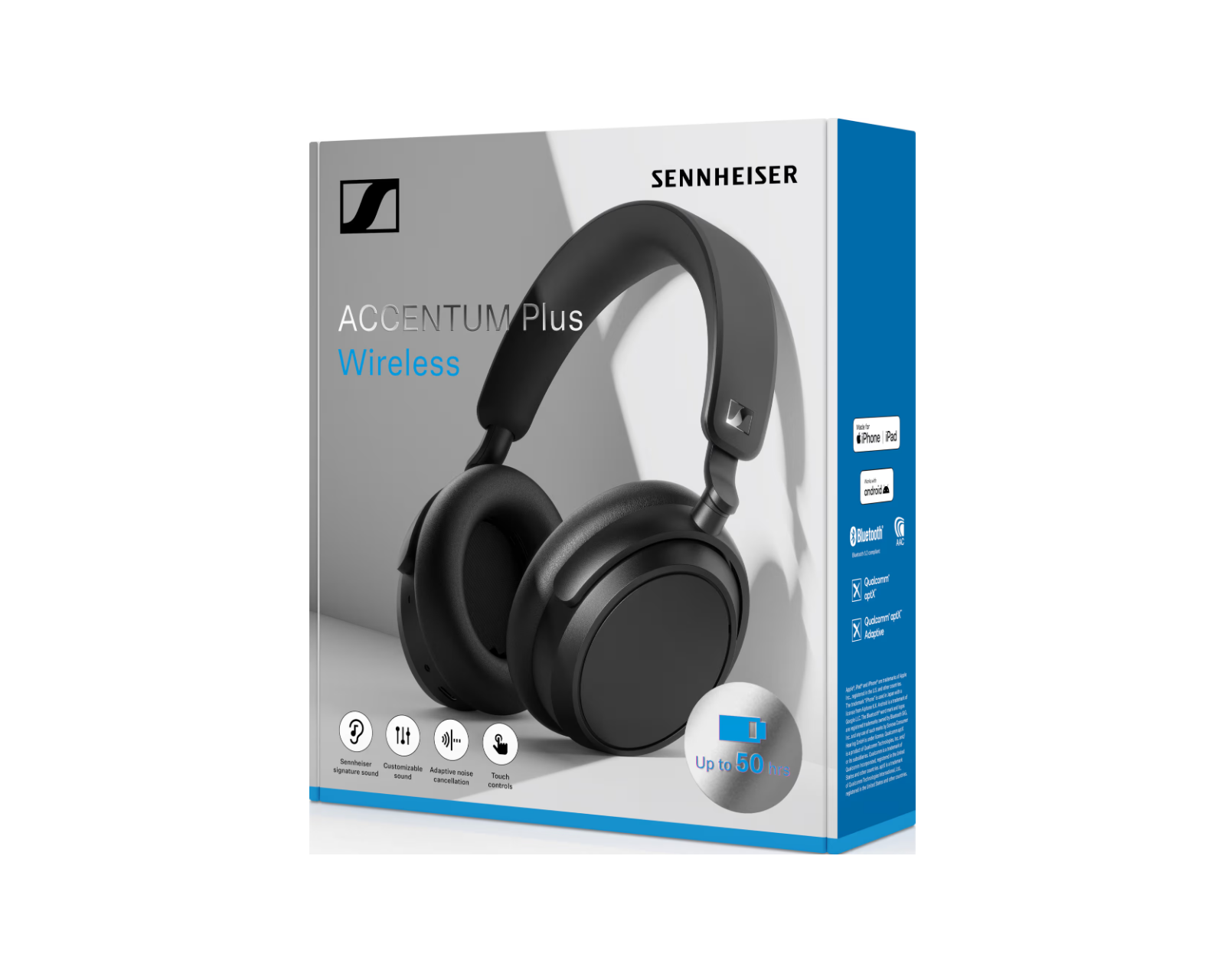Sennheiser Accentum Plus on langaton over-ear-kuulokkeet Sennheiserilta, joissa on muokattava äänitekniikka ja vaikuttava akunkesto. Ainoasta latauksesta saatavilla on jopa 50 tuntia soittoaikaa ja käytännöllinen pika-lataus vain 10 minuutissa antaa 5 tuntia käyttöä, joten nämä kuulokkeet tarjoavat erinomaista mukavuutta ja vapautta. Ne on erityisesti suunniteltu säätämään ääntä ympäristön mukaan ja ne sisältävät adaptiivisen aktiivisen melunvaimennuksen, joka tarjoaa immersiivisemmän kuuntelukokemuksen.Accentum Plus -kuulokkeissa on korkealaatuinen akustinen muotoilu, jossa on vinot 37 mm elementit, jotka varmistavat autenttisen äänikokemuksen. Viimeisimmän sukupolven adaptiivisen hybrid-ANC:n avulla voit helposti sulkea häiritsevät äänet pois, olitpa sitten meluisassa ympäristössä tai pitkällä lennolla. Kevyt ja ergonominen muotoilu tekee kuulokkeiden käytöstä mukavaa pidempien aikojen kuluessa, mikä on täydellistä sekä pelaamiseen että musiikin kuunteluun. Sisäänrakennettu 5-kaistainen taajuuskorjain tarjoaa mahdollisuuden mukauttaa ääniä mieltymyksiesi mukaan.