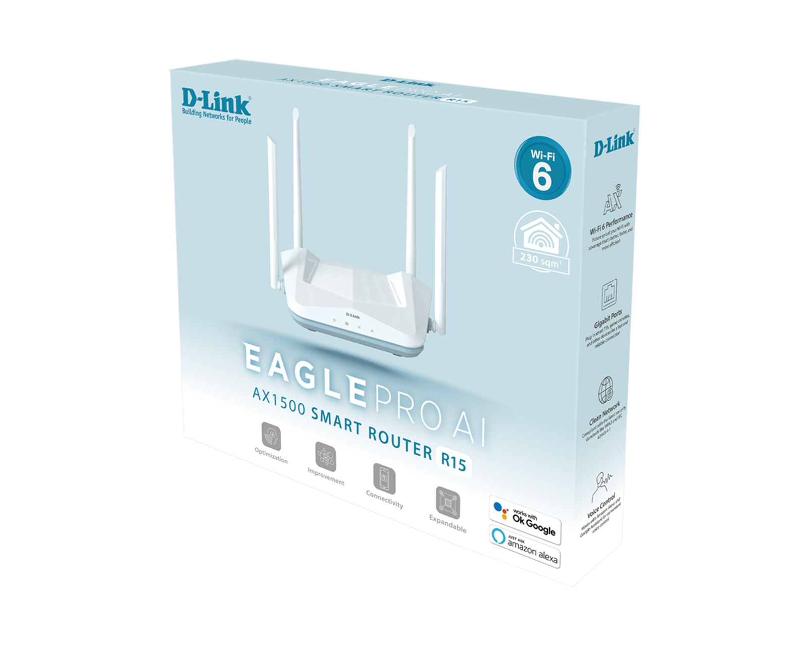 EAGLE PRO AI AX1500 älykäs reititin on D-Linkin reititin, joka tarjoaa kehittynyttä Wi-Fi-tekniikkaa, joka tukee Wi-Fi 6:ta. Tässä reitittimessä on yhteensä 1500 Mb/s tiedonsiirtonopeus, joka jakautuu 1201 Mb/s taajuudella 5 GHz ja 300 Mb/s taajuudella 2.4 GHz. Tuote on suunniteltu tukemaan useita laitteita samanaikaisesti, mikä tekee siitä sopivan älykoteihin, joissa useat käyttäjät voivat suoratoistaa, pelata tai työskennellä keskeytyksettä. Reititintä hallitaan helposti EAGLE PRO AI -sovelluksen kautta, ja siinä on kehittyneitä turvallisuusominaisuuksia, kuten WPA3.EAGLE PRO AI AX1500 on varustettu kaksitaajuisella teknologiolla, joka mahdollistaa optimoidun verkkokokemuksen. Ominaisuuksien, kuten MU-MIMO ja OFDMA avulla laite voi tehokkaasti hallita useita samanaikaisia yhteyksiä, mikä minimoi ruuhkat. Ääniohjaus Googlen ja Alexan kautta on myös saatavilla, mikä antaa käyttäjille vielä enemmän hallintaa verkostaan. Reitittimessä on AI-pohjainen Mesh-toiminnallisuus, joka parantaa verkkokattavuutta. Vanhempien valvontatoiminnot ja liikenteen optimointi sisältyvät käyttäjäkokemuksen lisäämiseksi.