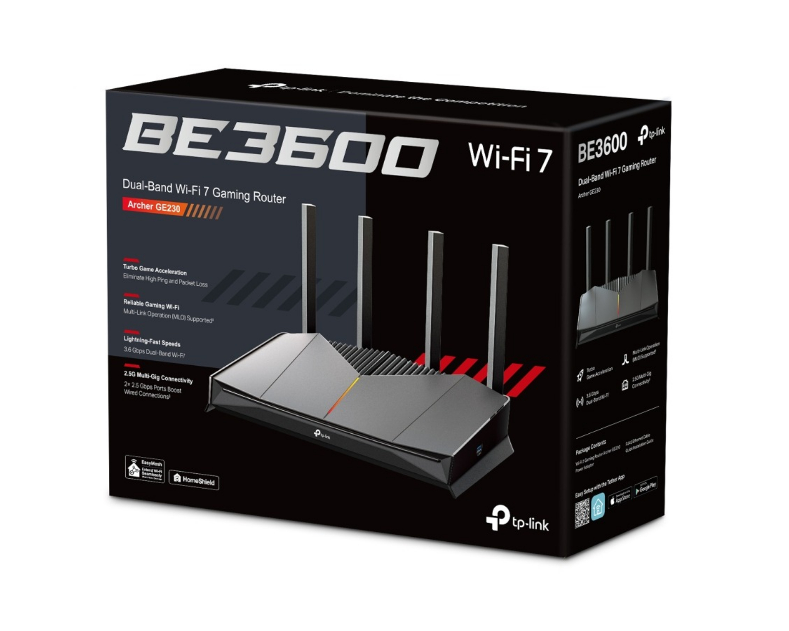 Archer GE230 on TP-Linkin dual-band Wi-Fi 7 pelireititin, joka tarjoaa erinomaisia nopeuksia ja suorituskykyä vaativille pelaajille. Nopeuksilla jopa 3600 Mbps käyttäjät voivat nauttia nopeista ja vakaista yhteyksistä, mikä parantaa peli- kokemusta merkittävästi. Reitittimessä on myös kaksi 2.5G LAN-porttia, jotka mahdollistavat nopeamman tiedonsiirron, mikä tuo lisää tehoa online-pelaamiseen.Rakennettu tukemaan uusinta teknologiaa, Archer GE230:ssa on quad-core CPU, joka käsittelee useita datapurskeita tehokkaasti. Multi-Link Operation (MLO) mahdollistaa rinnakkaisen tiedonsiirron, mikä vähentää latenssia ja parantaa kokemusta intensiivisen pelaamisen aikana. Omistettu pelipaneeli tarjoaa reaaliaikaista tietoa verkkostatus ja reitittimen suorituskyvystä, jotta käyttäjät voivat optimoida yhteytensä. Reitittimessä on myös RGB-valaistus, ja sen muotoilu on inspiroitunut kilparuoista, mikä tekee siitä visuaalisen lisän pelimaailmaan. TP-Link EasyMesh -tuen avulla reititin voidaan helposti integroida muihin laitteisiin, jotta voidaan luoda yhtenäinen ja luotettava kotiverkko.