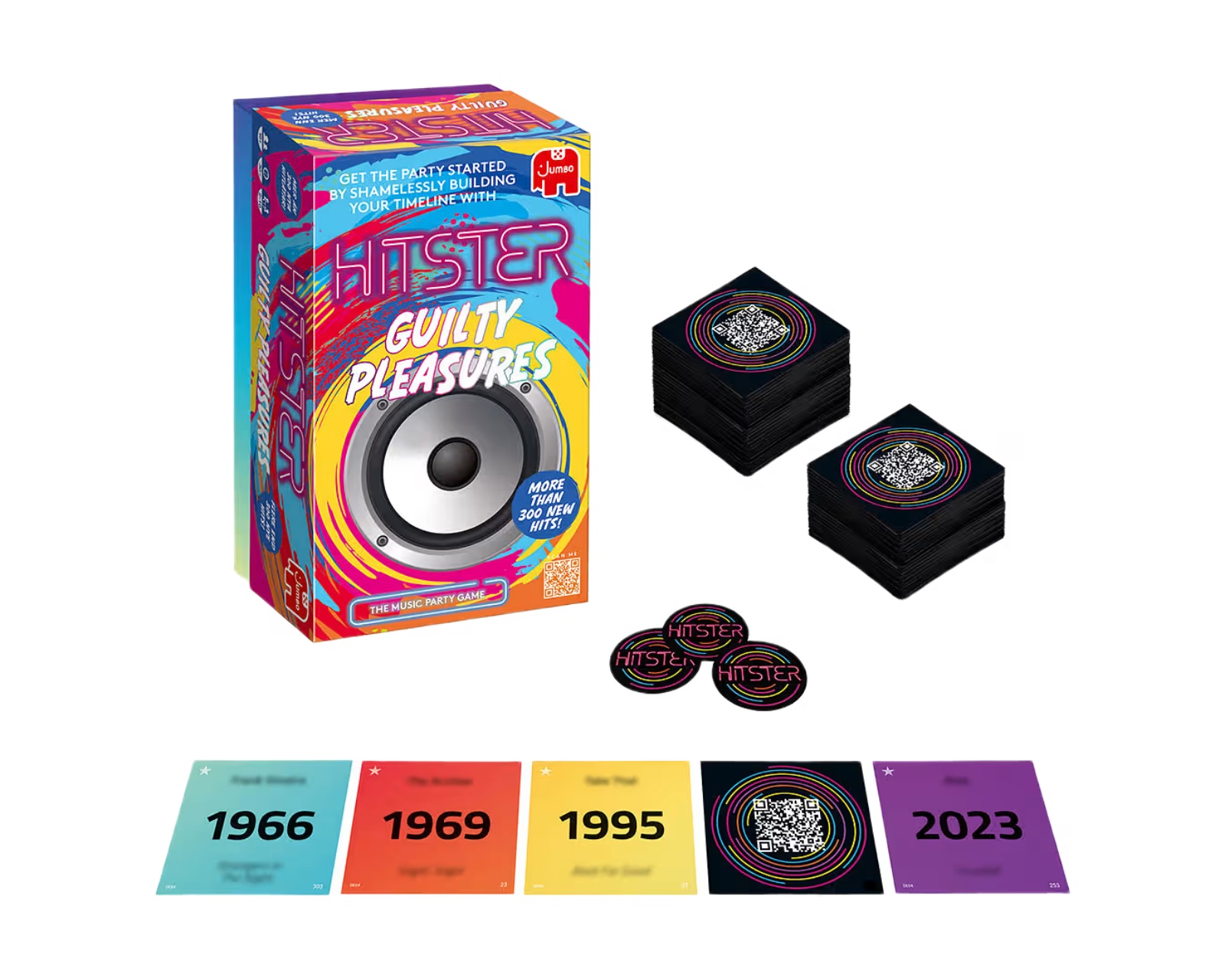 Hitster Guilty Pleasures on lautapeli, joka yhdistää nostalgiaa ja jännittävää pelaamista. Peli keskittyy viime vuosikymmenien häpeällisimpiin iloisin hetkiin, mikä tekee siitä viihdyttävän aktiviteetin aikuisille ja nuorille. Tavoite on yksinkertainen; pelaajat rakentavat aikajanan kappaleista, ja ensimmäinen pelaaja, joka kerää 10 hittiä, nimetään HITSTERiksi. Peliä voidaan pelata joko itsenäisesti tai yhdessä alkuperäisen Hitster-pelin kanssa, mikä antaa joustavuutta erilaisiin pelisessioihin.Hitster Guilty Pleasures tarjoaa hyvin suunnitellun pelikokemuksen, jossa on helpposeurattava asettelu. Pelimateriaali on korkealaatuista ja suunnittelu tukee intuitiivista pelinkulkua. Mukana olevat kappaleet on valittu maksimoiamaan tunnistettavuuden ja viihdyttävyyden, mikä mahdollistaa kaiken ikäisten pelaajien osallistuvan ja nauttivan. Musiikin ja kilpailun yhdistelmänsä ansiosta se voi luoda monia hauskoja hetkiä, joissa kaikki voivat laulaa mukana ja nauraa nostalgisille valinnoille.
