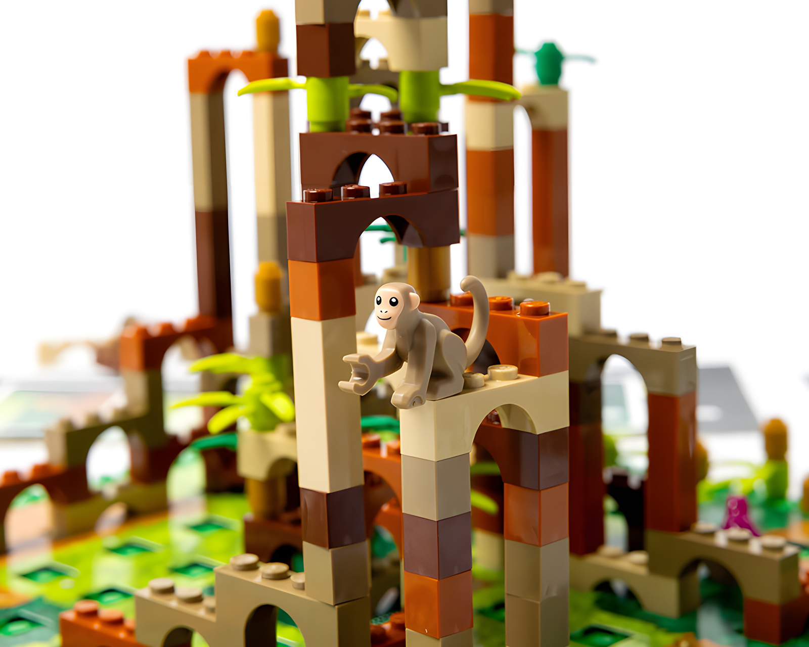 Apinapalatsi on LEGO®-lautapeli, joka yhdistää strategisen rakentamisen kilpailuun. Pelaajien täytyy rakentaa Apinapalatsi uudelleen rakentamalla portaita, keräämällä apinakrediittejä ja nostamalla apinakortteja maksimoidakseen banaanipisteensä. Peli on suunniteltu 2?4 pelaajalle ja sitä suositellaan 10-vuotiaille ja sitä vanhemmille. Peli kestää noin 45 minuuttia.Peli koostuu useista osista, mukaan lukien rakennuspalikoita, joita pelaajat käyttävät portaiden rakentamiseen. Mitä enemmän palikoita käytetään, sitä korkeammat portaat voidaan rakentaa, mikä tuottaa enemmän apinakrediittejä ja mahdollistaa tehokkaampien apinakorttien käytön. Apinakortit tarjoavat erilaisia etuja ja strategisia mahdollisuuksia. Pelimekaniikkaan kuuluu myös mikrolaajennusominaisuuksia siemen- ja perhoselementteineen, jotka parantavat rakennusstrategioita. Säännöt sisältävät videosääntökirjan, joka auttaa alkuun pääsemisessä.