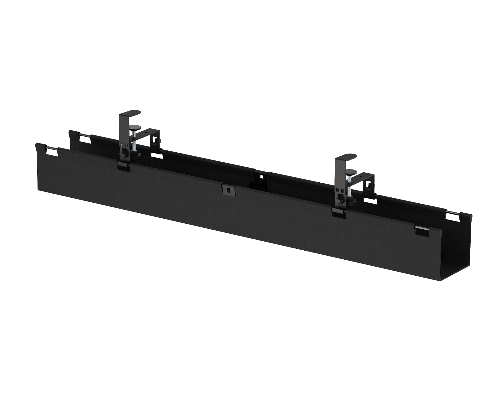 Kabelkanava pöytäkiinnityksellä MaxMountilta piilottaa kaapelit ja johdot tehokkaasti pöydän alle. Kabelkanavan asennus onnistuu helposti pöytäkiinnityksellä ja se tarjoaa säädettävän korkeuden kahdessa asennossa, mikä antaa joustavuutta eri kaapeleille ja laitteille. Kabelkanava on valmistettu teräksen, muovin ja Oxford-kankaan yhdistelmästä, jossa on jauhemaalattu pinta, mikä takaa sekä kestävyyden että ammattimaisen ulkonäön.Kabelkanavassa on sisäänrakennetut kiinnikkeet turvalliseen kaapelinhallintaan ja se toimitetaan kahden kaapelikoukun sekä 2 metrin säädettävän kaapelinarun kanssa optimoiduksi kaapeliksi. Painokapasiteetti on jopa 5 kg, mikä varmistaa sen toimivuuden ja käytettävyyden eri työpisteissä.