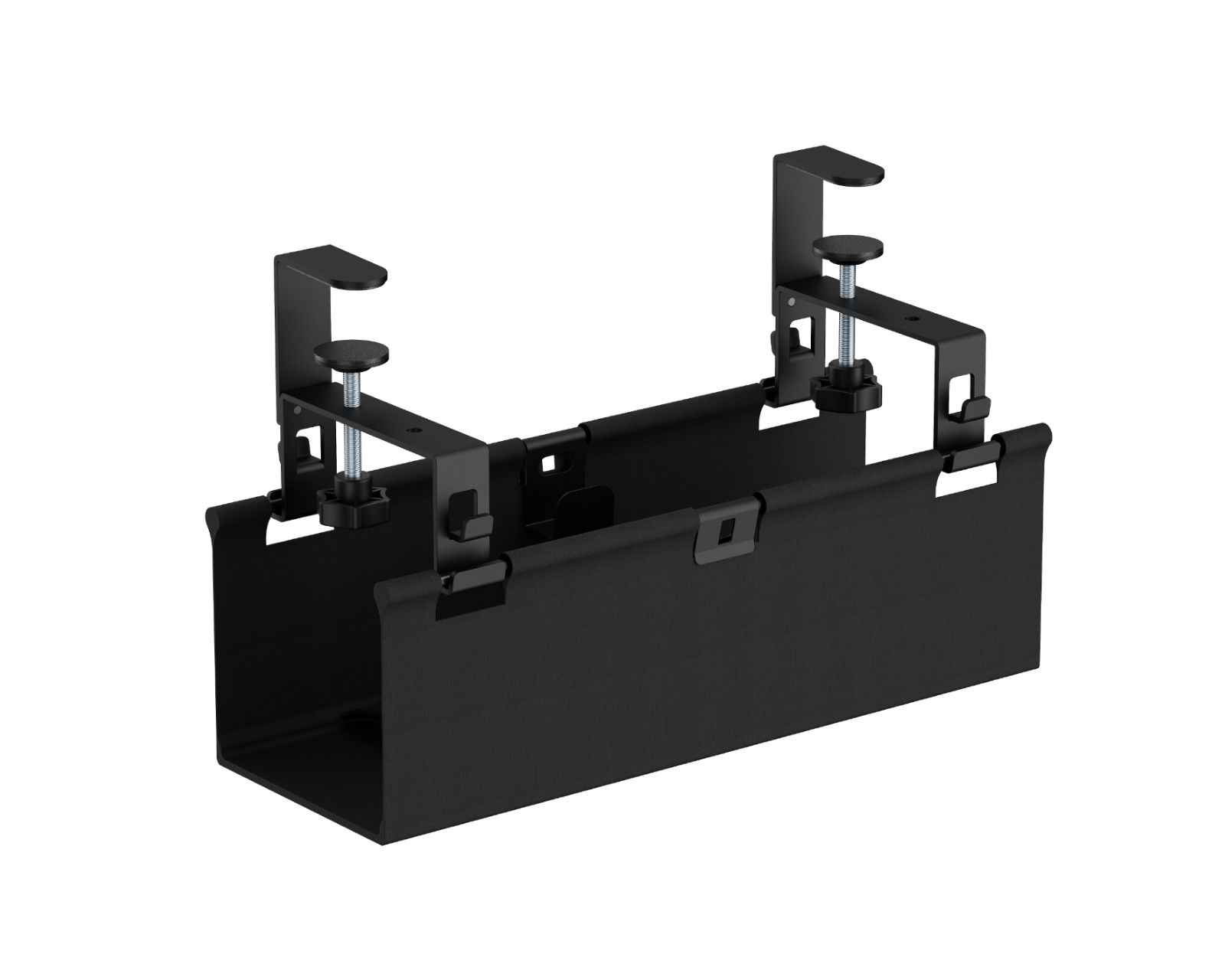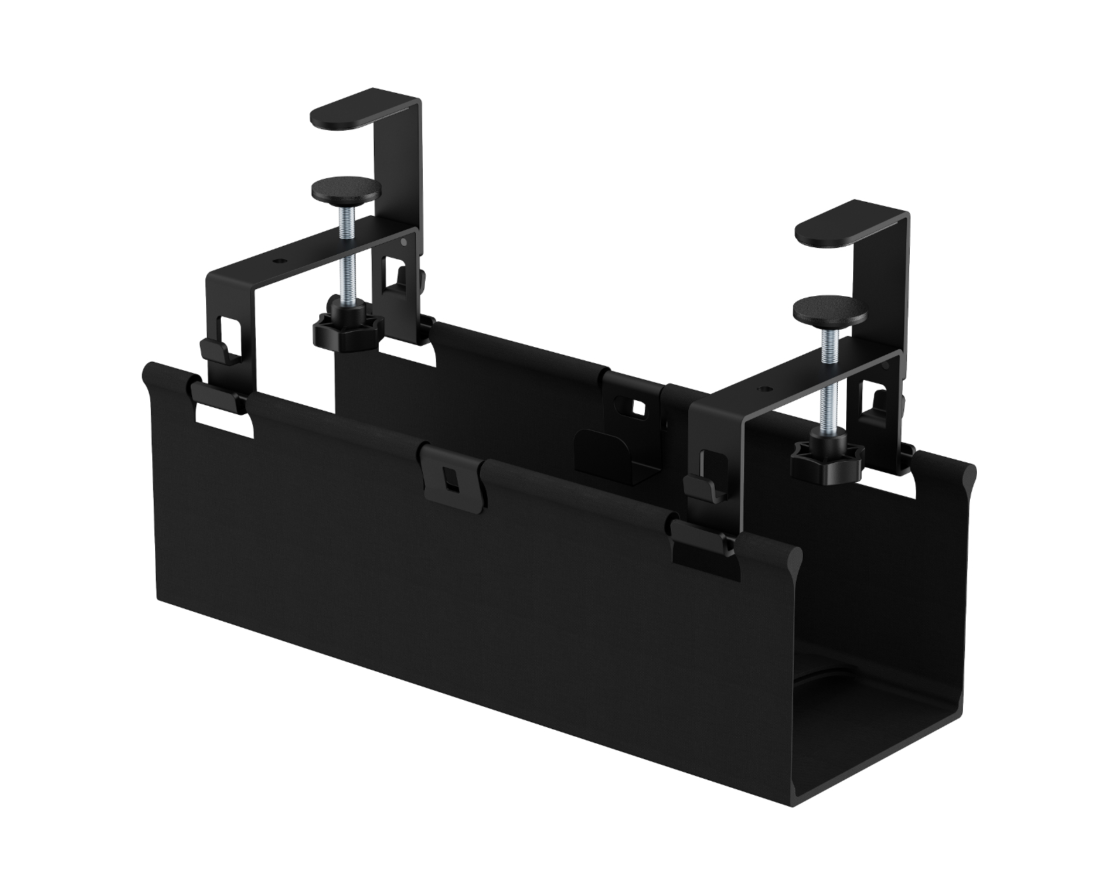 Kabelkanava työpöydän kiinnityksellä MaxMountilta piilottaa kaapelit ja johdot tehokkaasti työpöydän alle. Kabelkanava asennetaan helposti pöydän kiinnityksen avulla ja tarjoaa säädettävän korkeuden kahdella asetuksella, mikä antaa joustavuutta eri kaapeleille ja laitteille. Kabelkanava on valmistettu teräksen, muovin ja oxford-kankaan yhdistelmästä, ja sen pinta on jauhemaalattu, mikä tarjoaa sekä kestävyytä että ammattimaista ilmettä.Kabelkanavassa on sisäänrakennettuja kiinnikkeitä turvalliseen kaapelinhallintaan, ja se toimitetaan kahden kaapitukivarren sekä 2 metrin säädettävän kaapelivyön kanssa optimaalista kaapelointia varten. Painokapasiteetti on jopa 5 kg, mikä varmistaa sen toiminnallisuuden ja käyttökelpoisuuden erilaisilla työpisteillä.