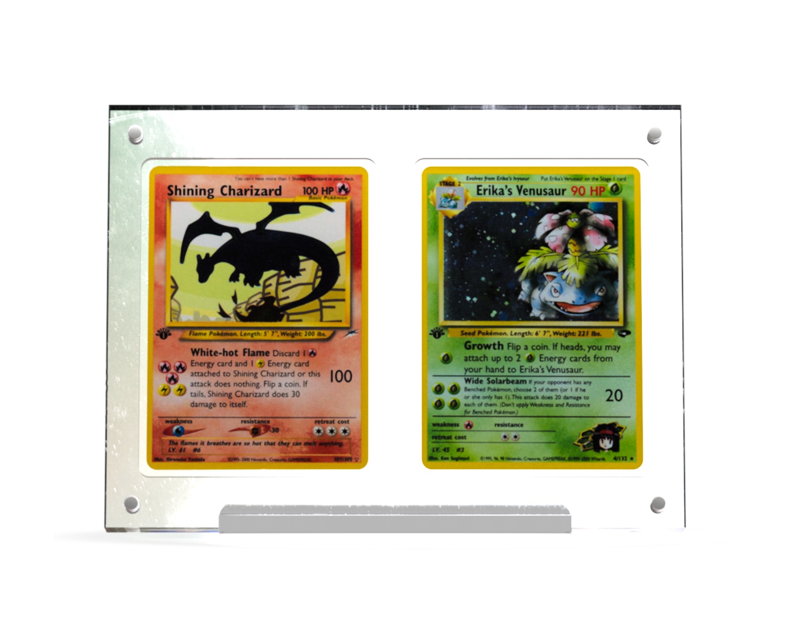 Duo on MaxCustomin suunnittelema keräilykorttiteline, joka esittelee jopa kahta korttia, kuten Pokémon-kortteja. Kirkas ja tyylikäs muotoilu takaa korttien maksimaalisen näkyvyyden, mikä on erityisen tärkeää kokoajille, jotka haluavat korostaa korttejaan. Tuote on saatavilla myös Trio-versiona, joka esittelee kolme korttia.Yhteenveto