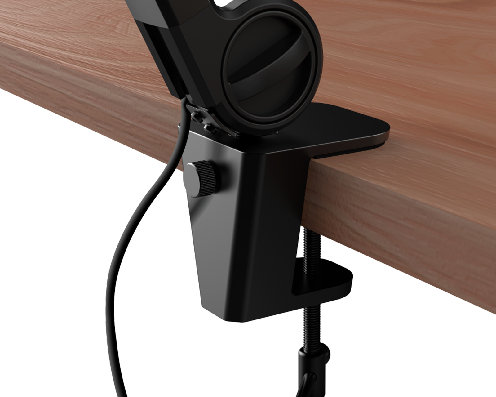 Studiolaatuisia äänityksiä varten tarvitset vakaan asennuksen. Mukana oleva käsivarsijalusta on valmistettu kestävästä alumiinista vähentämään tärinästä aiheutuvaa ei-toivottua melua. Käsivarsi on täysin säädettävä, joten voit varmistaa parhaan asennon ja kulman tallennusta varten pitäen samalla silmällä ergonomiaa. Kiinnittämällä telineen pöytään säästät tilaa ja pidät työpöydän puhtaana.