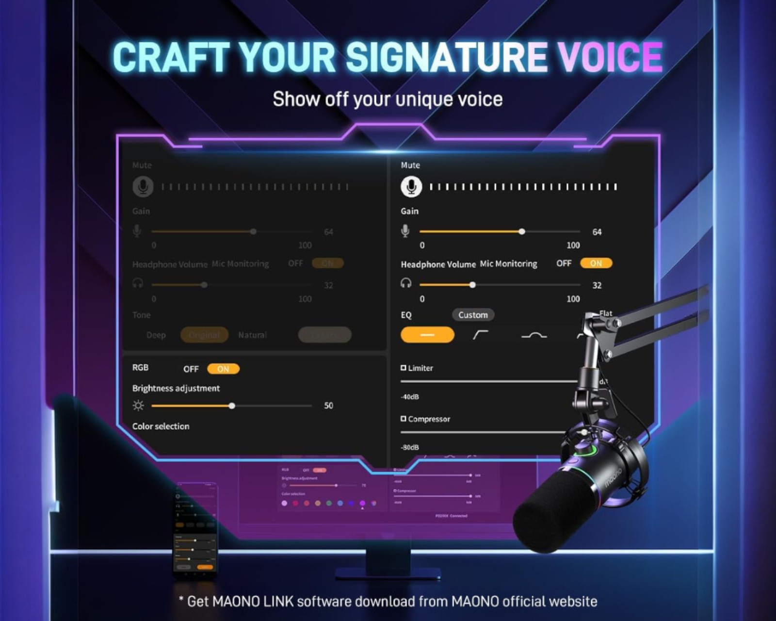 Maono on innovatiivinen äänibrändi, joka keskittyy mikrofoneihin, kuulokkeisiin ja ääniratkaisuihin sisällöntuottajille, striimaajille ja podcasteille. Modernin teknologian, tyylikkään muotoilun ja helppokäyttöisyyden ansiosta Maono tuo ammattitason äänen kaikkien ulottuville.