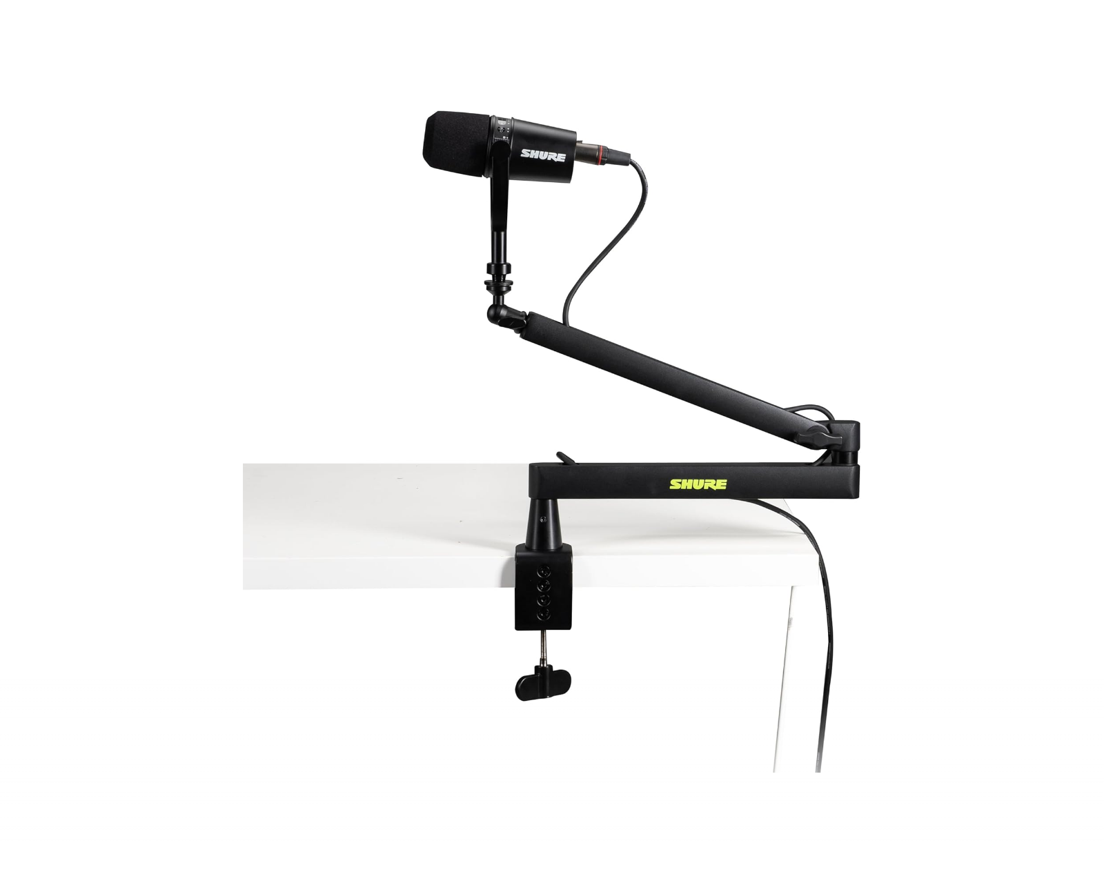 Maximoi studiota tai työskentelytilaa Shure by Gator Low Profile Boom -mikrofonivarrella, täydellinen ratkaisu podcastereille, striimaajille ja lähetystoiminnan harjoittajille, jotka etsivät huomaamatonta eleganssia ja toiminnallisuutta. Alhaisen profiilin muotoilu asettaa mikrofonivarren olkapään korkeuden alapuolelle, jotta se ei estä näkemistä, mikä on täydellinen niin pienille kuin suurille työpöydille. Hiljainen 360 asteen kierto ja 90 asteen pystysuuntainen säätö tarjoavat poikkeuksellista joustavuutta, kun taas kestävä teräsrakenteen avulla se kestää mikrofoneja, joiden paino on jopa 2 kiloa.Helppo asentaa valinnaisella puristimella tai ruuvikiinnityksellä, yhdessä sisäänrakennettujen magneettisten kaapeliurien kanssa, mikä auttaa pitämään työskentelytilan siistinä ja järjestettynä. Yhteensopiva mikrofonisarjojen, kuten Shure SM7 ja MV7, kanssa.