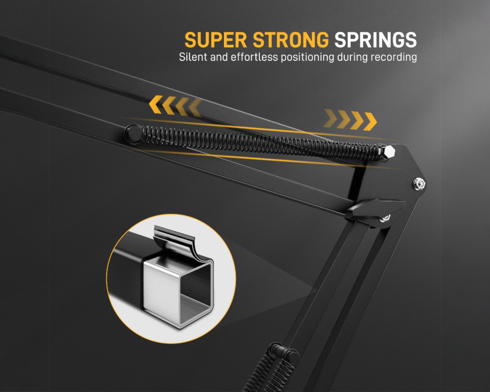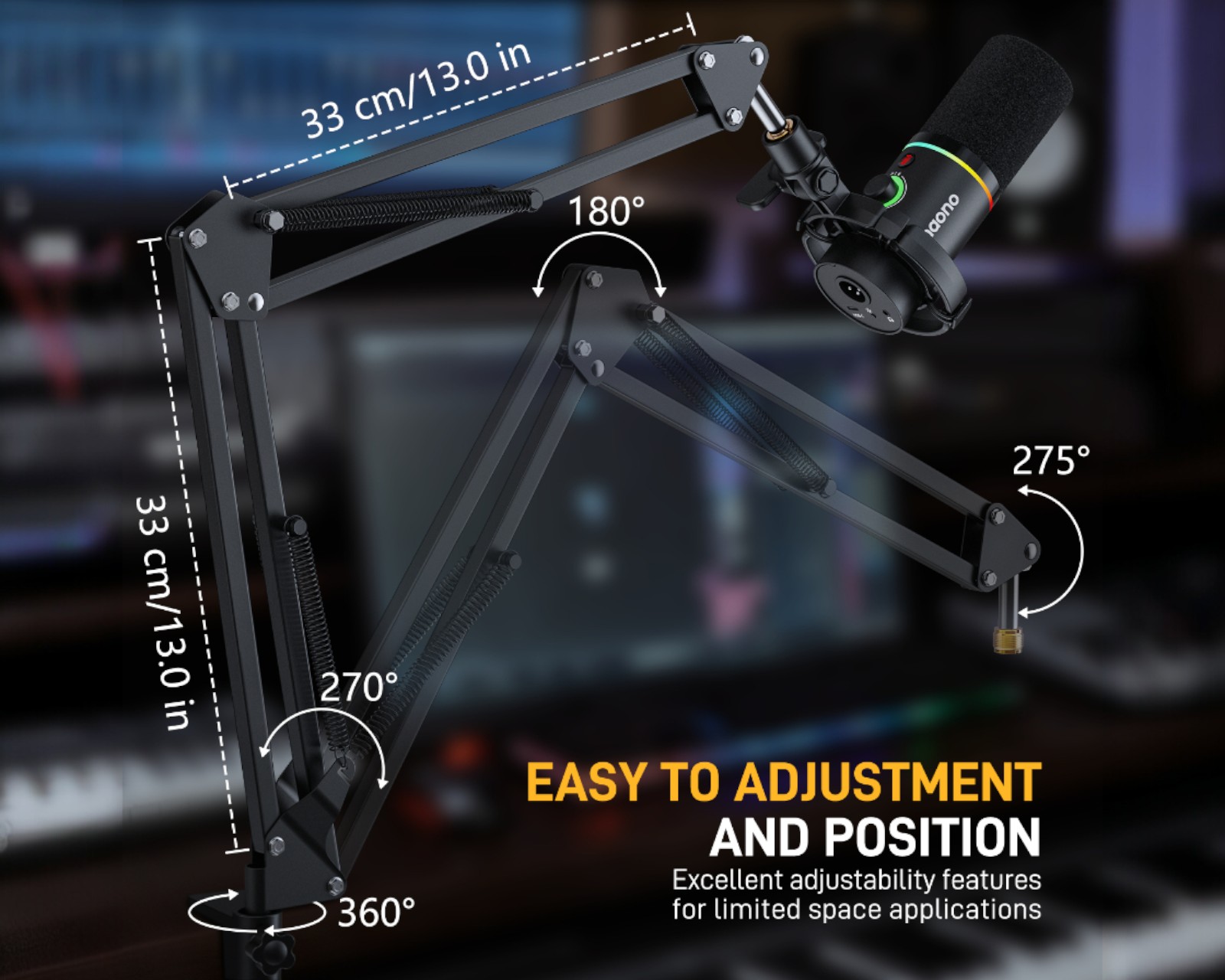 Mikrofonituki Maonolta, joka tarjoaa vakaan ja luotettavan suorituskyvyn. Varustettu kehittyneellä teräsrakenteella ja tarkasti suunnitelluilla jouksilla, se voi tukea mikrofoneja, jotka painavat jopa 1 kg. Sen tekniset tiedot sisältävät 5/8" - 3/8" ruuviadapterin ja standardin mikrofonikiinnikkeen, joka sopii useimmille mikrofoneille. Tämä tuote on erityisen sopiva podcasteille, striimaajille ja pelaajille.Boom-armien suunnittelu tekee mikrofonin säätämisestä ja paikalleen asettamisesta helppoa optimaalisen nauhoitusmukavuuden saavuttamiseksi. Irrottamalla vain nupin voi kulmaa ja korkeutta säätää, mikä mahdollistaa hiljaisen ja sujuvan sijoittamisen. Se on suunniteltu niin, että käyttäjä voi siirtää mikrofonin helposti tarvittaessa ja sitten työntää sen pois puhtaalle työskentelyalueelle nauhoituksen aikana.