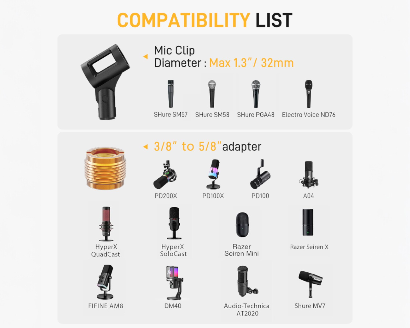 - Sisältää ruuviadapterin ja mikrofonikiinnikkeen