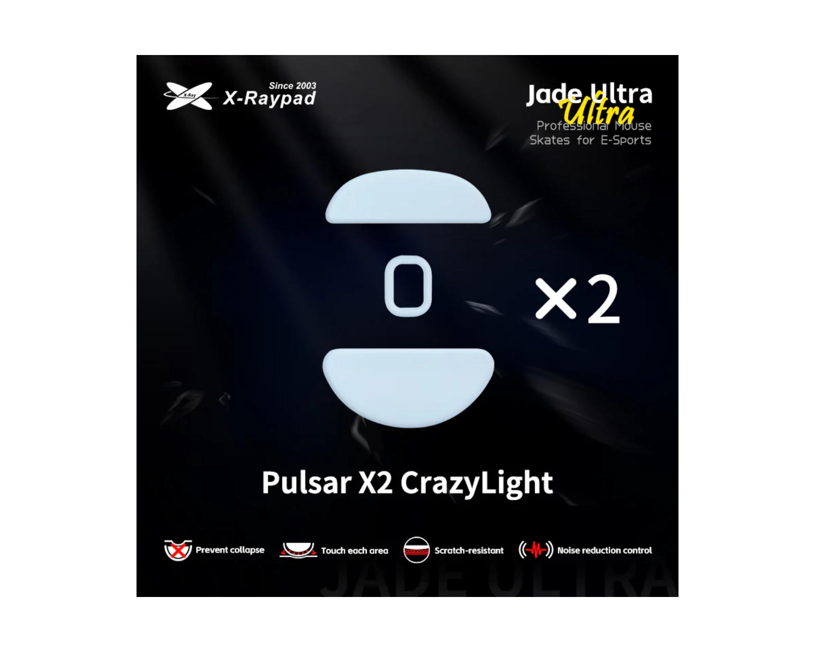 Jade Ultra Skates ovat X-Raypadin hiiriliukumekanismisarja, joka on suunniteltu Pulsar X2 CrazyLight -pelihiirelle. Nämä liukumekanismit ovat 1 mm paksut (+/-0,1 mm) ja valmistettu puhtaasta PTFE-materiaalista, mikä tarjoaa kestäviä ja liukasta pintaa. Ne sisältävät myös ylimääräisen antikollaps täyttöteknologian, joka parantaa ääni- ja värinätason vaimennusta. Jade Ultra Skates ovat yhteensopivia sekä kangas- että muovihiirimattojen kanssa, eivätkä ne sovellu lasipinnoille. Sarja sisältää kaksi liukumasarjaa varmistaen pitkäaikaisen suorituskyvyn.Materiaali on huolellisesti valittu naarmuuntumisen estämiseksi, mikä lisää liukumasarjojen luotettavaa laatua. PTFE-pohjainen pinta minimoi kitkaa alustaa vasten, mikä antaa pelaajille parannetun ja paremmin hallitun hiiren liikkeen. Vaimentava teknologia laskee käytön aikana äänenvoimakkuutta, mikä luo hiljaisemman työympäristön. Tarkkuuden ansiosta jokaista pinta-aluetta käytetään tehokkaasti, ja nämä liukumasarjat on suunniteltu optimoimaan sekä nopeutta että tuntemusta.