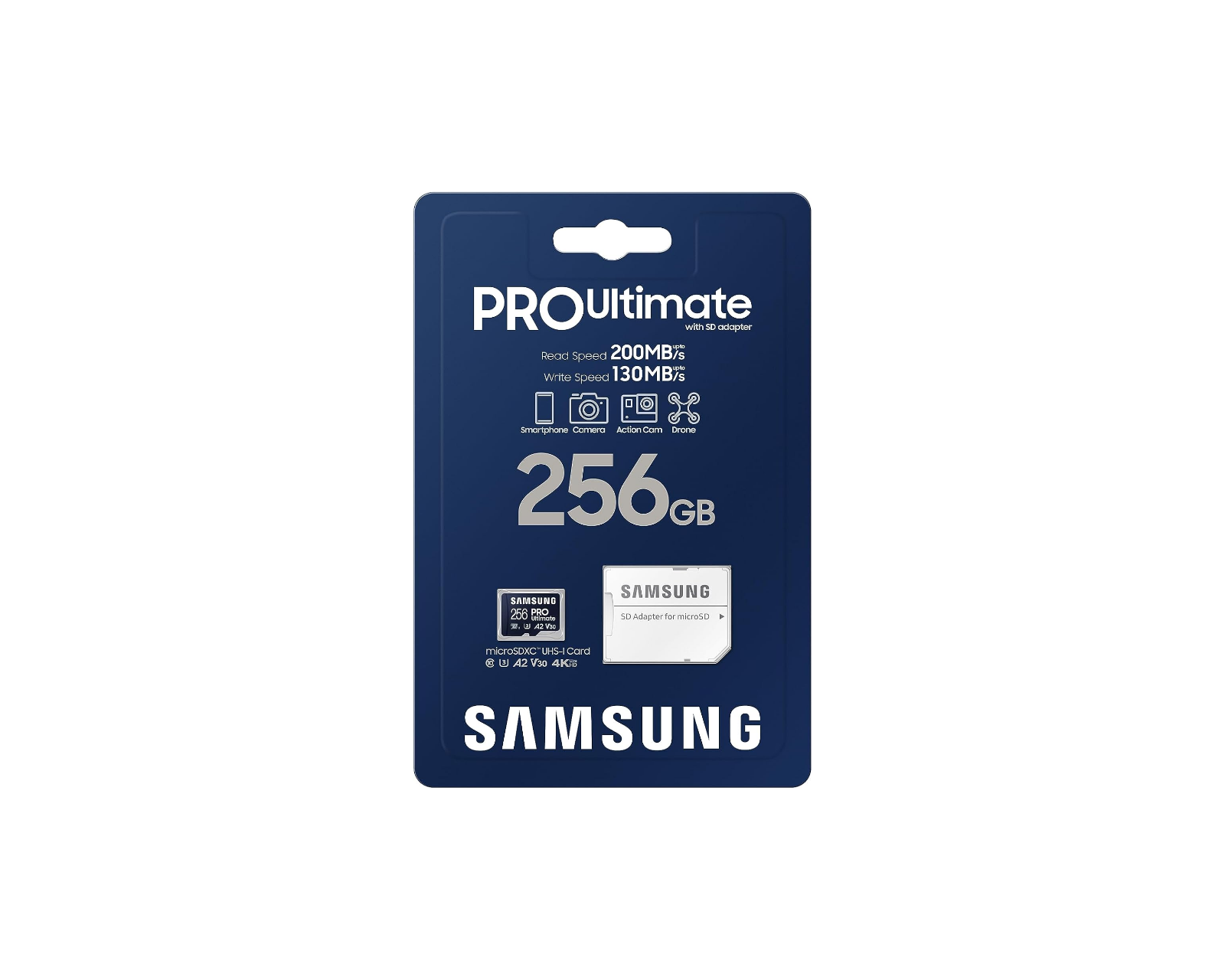 MicroSD PRO Ultimate on Samsungin huipputehokas muistikortti, joka on suunniteltu vastaamaan pelureiden ja luovien ammattilaisten tarpeisiin. Impressive tallennuskapasiteetti 258 GB mahdollistaa jopa 7,5 tuntia 4K/UHD-videota tai 67 518 valokuvaa FHD:llä. Varustettuna jopa 200 MB/s lukunopeudella ja 130 MB/s kirjoitusnopeudella, tämä kortti on täydellinen älypuhelimille, droneille ja toiminta-kameroille.PRO Ultimate -kortti tarjoaa kestävyyttä ja monipuolisuutta, kuudella suojaustoiminnolla, mukaan lukien vedenkestävyys, lämpötilankestävyys, röntgensäteilyltä suojaus ja iskujen kestävyys. Sen koko on 15 x 11 x 1 mm ja se painaa vain 0,26 g, mikä tekee siitä kevyen ja helppokäyttöisen. UHS-I U3 -luokituksensa ansiosta se takaa korkean nopeuden 4K/UHD:lle ja sarjakuvaamiseen, jolloin käyttäjät voivat tallentaa ja varastoida intensiivisimmin yksityiskohtaisia hetkiä tinkimättä suorituskyvystä.