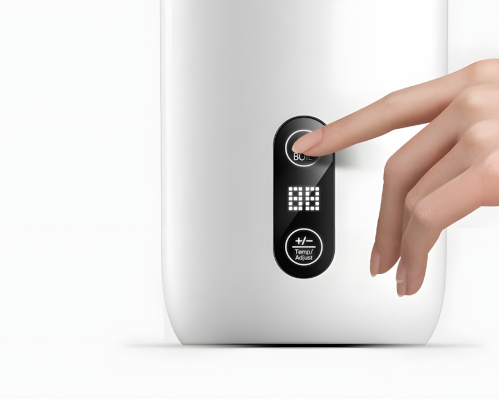 Kolmilayer-eristys estää palovammoja käytön aikana ja lisää turvallisuutta. Vedenkeitin on varustettu kosketusnäytöllä, joka mahdollistaa helpon lämpötilan valvonnan ja keittoprosessin ohjauksen. Integroitu turvaventtiili varmistaa oikean paineen hallinnan, ja älykkään teknologian ansiosta se kuumentaa veden jopa 8,5 minuutissa, mikä tekee siitä sopivan sekä kotiin että matkalle.