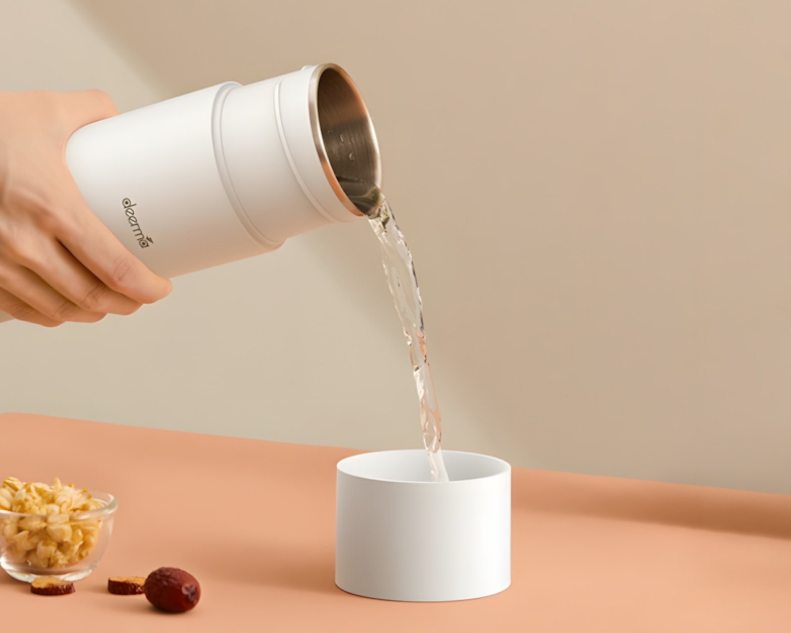 Käytännöllinen vedenkeitin Deerma:lta, joka tarjoaa sekä keitto- että termofunktion kompaktissa laitteessa. Sen kapasiteetti on 350 ml ja se on valmistettu kestävästä 304 ruostumattomasta teräksestä, mikä takaa pitkäaikaisen käytön. Tuote on suunniteltu kevyeksi ja kannettavaksi, mikä tekee siitä ihanteellisen käytettäväksi kotona, toimistossa tai matkustaessa.Laite on varustettu kolmella kerroksella lämpöeristystä, mikä pitää lämpimän sisällön lämpimänä pidempään irrottamisen jälkeen. Siinä on myös turvallisuusventtiilijärjestelmä, jossa on kolme venttiiliä, jotka varmistavat tehokkaan haihtumisen ja lisäävät turvallisuutta. Yhden painikkeen tekniikka tekee siitä käyttäjäystävällisen, ja liukumaton silikonipohja varmistaa vakauden käytön aikana. Kaapelit ovat irrotettavia helpompaa kuljetusta ja säilytystä varten.