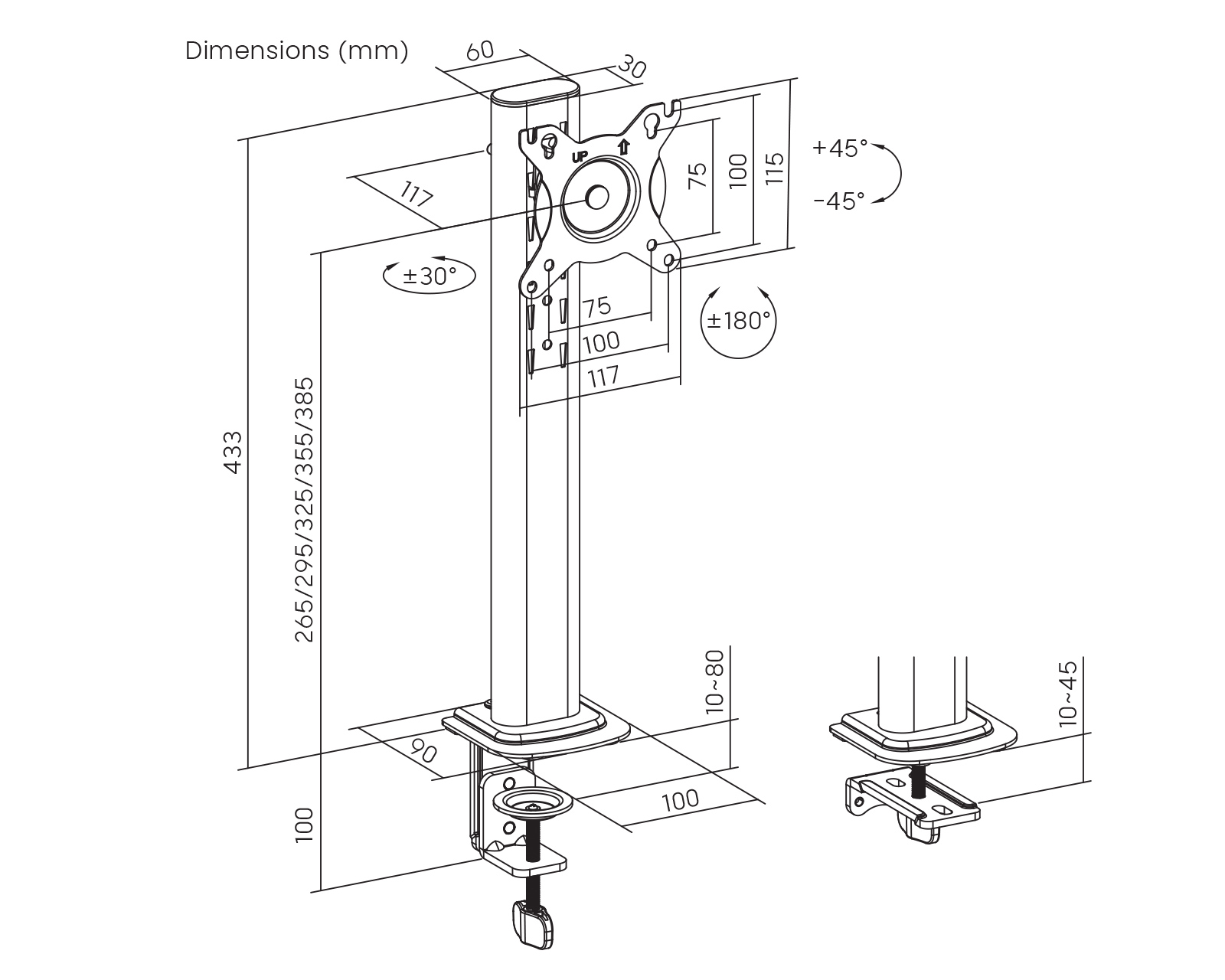 MaxMountin näyttöteline on suunniteltu tukemaan näyttöjä, jotka ovat kooltaan 17-34 tuumaa. Tämä teline tarjoaa ergonomisen korkeussäädön ja on suunniteltu maksimoinnin visuaalista mukavuutta. Maksimipaino on 12 kg per näyttö, ja sen kestävä rakenne pystyy helposti täyttämään tarpeesi, oli kyseessä sitten pelaaminen tai työskentely useilla näytöillä.Näyttöteline on valmistettu kestävästä muovista ja teräksestä, mikä takaa sen kestävyys ja vakaus. Työkaluvapaa kallistus +45° - -45° mahdollistaa näytön säätämisen nopeasti ja helposti, kun taas 360° kääntyvä VESA-levy antaa sinulle vapauden luoda täydellinen katselukulma. Lisäksi voit helposti integroida telineen kaapelinhallintaan, jotta työpisteesi pysyy siistinä. Teline tarjoaa myös sekä klipsi- että läpivientivaihtoehtoja, mikä tarjoaa joustavuutta asennukseen erilaisissa työpöytäympäristöissä.