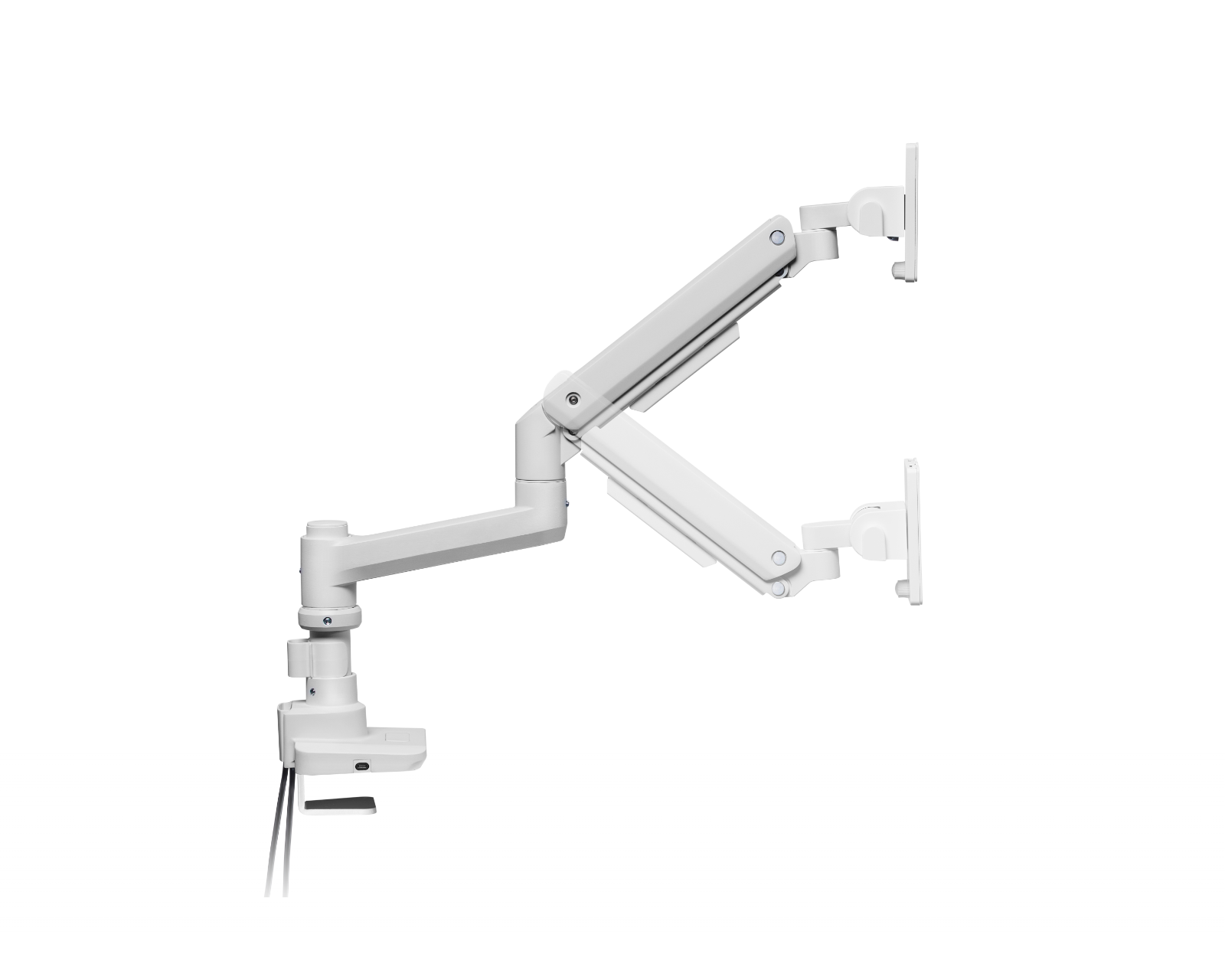 Skärmstandi 20kg Heavy-Duty 17"-49" USB-portilla on korkealaatuinen tuote MaxMountilta, joka on ihanteellinen pelaajille, jotka etsivät ergonomiaa ja joustavuutta työpöytäasetuksissaan. Tämä näyttöteline tukee näyttöjä, joiden koko on enintään 49 tuumaa ja maksimi 20 kg, mikä tekee siitä täydellisen raskaille pelimonitoreille ja ammattilaisnäytöille. Lisäksi se on suunniteltu helpottamaan katselukulman säätöä, mikä minimoi silmien ja niskan rasitusta.Kestävä alumiini- ja teräsrakenteinen takaa vakauden ja pitkän käyttöiän. Asennus tapahtuu helposti klipsin avulla, mikä säästää tilaa ja tekee asennuksesta nopeaa ja tehokasta. Telineissä on erinomainen kaasujousitekniikka ongelmattomaan säätöön, mikä mahdollistaa näytön kallistamisen, kääntämisen tai pyörimisen vaivattomasti. USB-A ja USB-C -portit mahdollistavat laitteiden liittämisen läheltä ja pitävät työskentelyalueen järjestyksessä. Kaapelinhallintajärjestelmä pitää kaapelit paikoillaan, mikä auttaa luomaan siistimmän työympäristön.