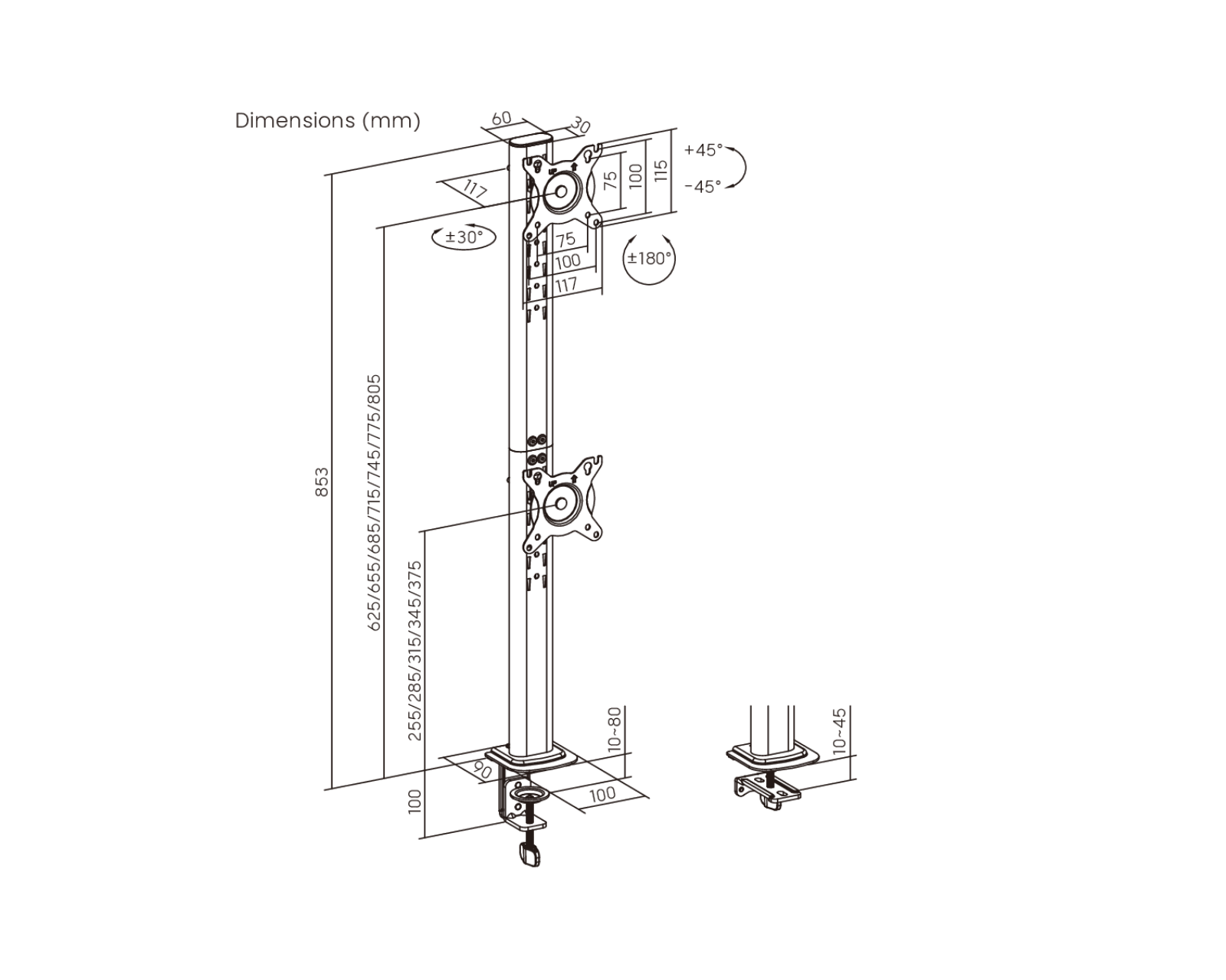 MaxMount Vertikaalinen Pöytäteline 2 näytölle 17"-34" 12 kg on kestävä ratkaisu MaxMountilta, suunniteltu pelaajille ja ammattilaisille, jotka tarvitsevat optimaalista näyttötilaa. Tämä pöytäteline mahdollistaa kahden näytön asettamisen pystysuoraan, mikä tarjoaa ergonomisen työskentelytilan ja vapauttaa arvokasta pöytätilaa. Teline tukee näyttöjä, joiden maksimi paino on 12 kg, ja siinä on VESA-kiinnikkeet sekä 75x75 mm että 100x100 mm.Pystyteline on valmistettu kestävästä teräksestä ja tarjoaa laajat säätömahdollisuudet, mukaan lukien kallistus jopa +45°/-45°, kääntösäde +30°/-30° sekä 360° kierto, joka mahdollistaa helposti vaihdon maisema- ja potrettiasetuksen välillä. Työkaluvapaa asennus vaatii ei ylimääräisiä tarvikkeita, mikä helpottaa täydellisen sijainnin löytämistä jokaiselle näytölle. Kaapelinhallinta pysyy järjestyksessä mukana tulevien kaapeliklipsien avulla, mikä edistää siistiä ja ammattimaista asennusta. Kompaktin pakkauskokonsa ansiosta tämä on myös ympäristöystävällinen valinta verkkokauppatilaajille.