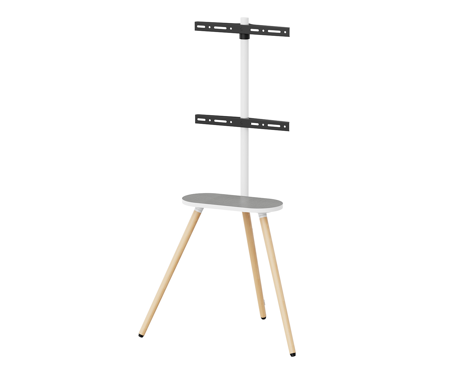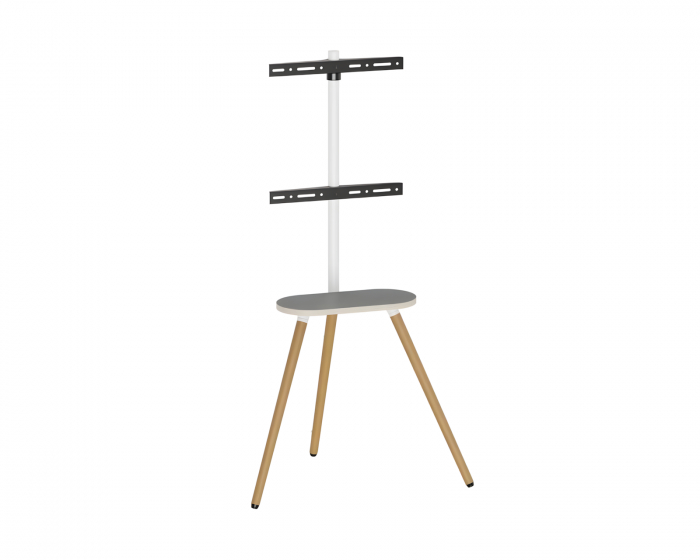Easel Studio TV Lattiateline on MaxMountin TV-teline, joka yhdistää tyylin ja toiminnallisuuden. Se on suunniteltu luomaan mukava katselukokemus, täydellinen kotiteattereihin, toimistoihin ja näyttelykeskuksiin. Kääntyvän näytön avulla, joka liikkuu +45° ja -45° välillä, voit helposti säätää kulmaa sopimaan yleisöön. Kiiltävä melamiinitaso sijaitsee suoraan TV:n alla ja tarjoaa käytännöllistä säilytystilaa kaukosäädöille, kannettaville kaiuttimille ja muille pienille esineille.Teline on valmistettu kestävistä materiaaleista, mukaan lukien teräs, alumiini ja melamiini, mikä takaa vakaan rakenteen, jonka kantokyky on jopa 35 kg. Kompaktin mitan ollessa 735x508x1365 mm se sopii 43-65 tuuman näyttöihin ja on VESA-yhteensopiva helppoa asennusta varten. Integroitu kaapelinhallintajärjestelmä pitää kaapelit järjestyksessä ja pois tieltä, mikä edistää siistiä ja puhdasta asennusta. Mukana olevat turvallisuusvaihtoehdot varmistavat, että teline ei kaadu.