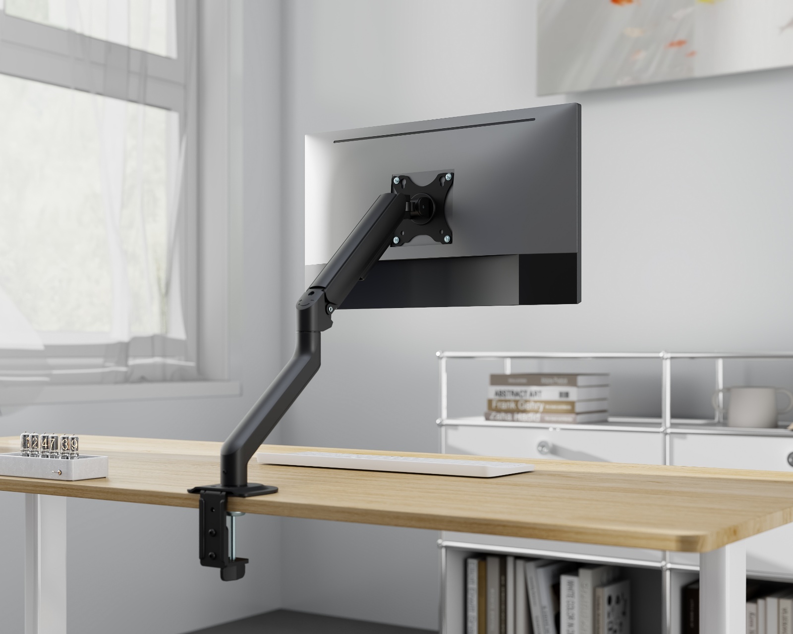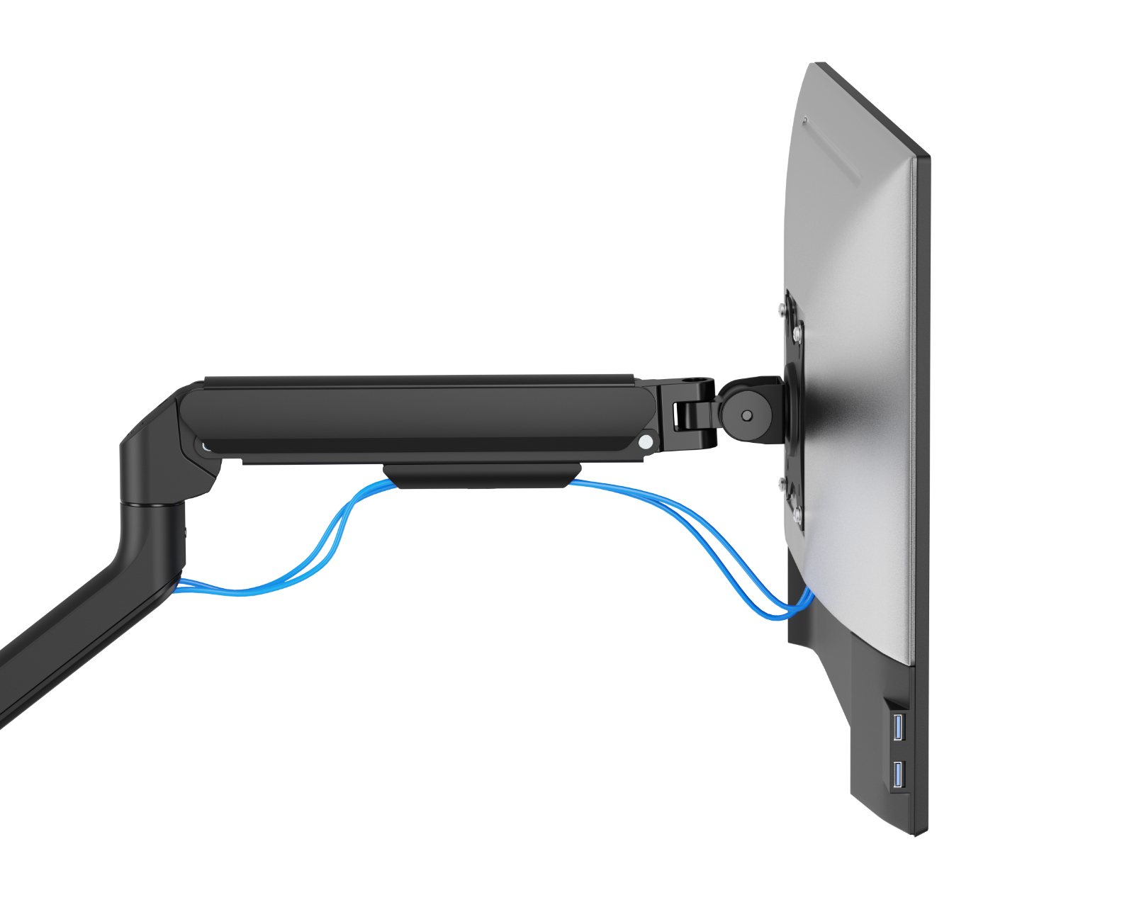 Näyttöteline MaxMountilta, joka tukee näyttöjä, joiden koko on 17" - 32" ja enimmäispaino 9 kg. Tämä varsi tarjoaa kätevän ja helpon säädön näytölle integroituun jousitukseen, joka helpottaa käyttöä. Asennuksen helpottamiseksi kiinnityslevy on varustettu avainreikämallilla ja nopean liitännän toiminnolla. Monitorivarsi on suunniteltu hallitsemaan kaapeleita tehokkaasti ja edistämään järjestelmällistä työskentelytilaa.Varren rakenne mahdollistaa suuren liikkuvuuden näytölle. Sitä voidaan kallistaa, kääntää ja pyörittää, mikä mahdollistaa näytön korkeuden ja kulman säätämisen optimaalista katselua varten. Tämä monitorivarsi on saatavana kahdella kiinnitys vaihtoehdolla: sekä pöytäklemppari että grommet sisältyvät, mikä mahdollistaa sen mukauttamisen eri pöytätyypeille. Lisäksi integroitu kaapelinhallintajärjestelmä varmistaa siistin ja puhtaan työskentelytilan.