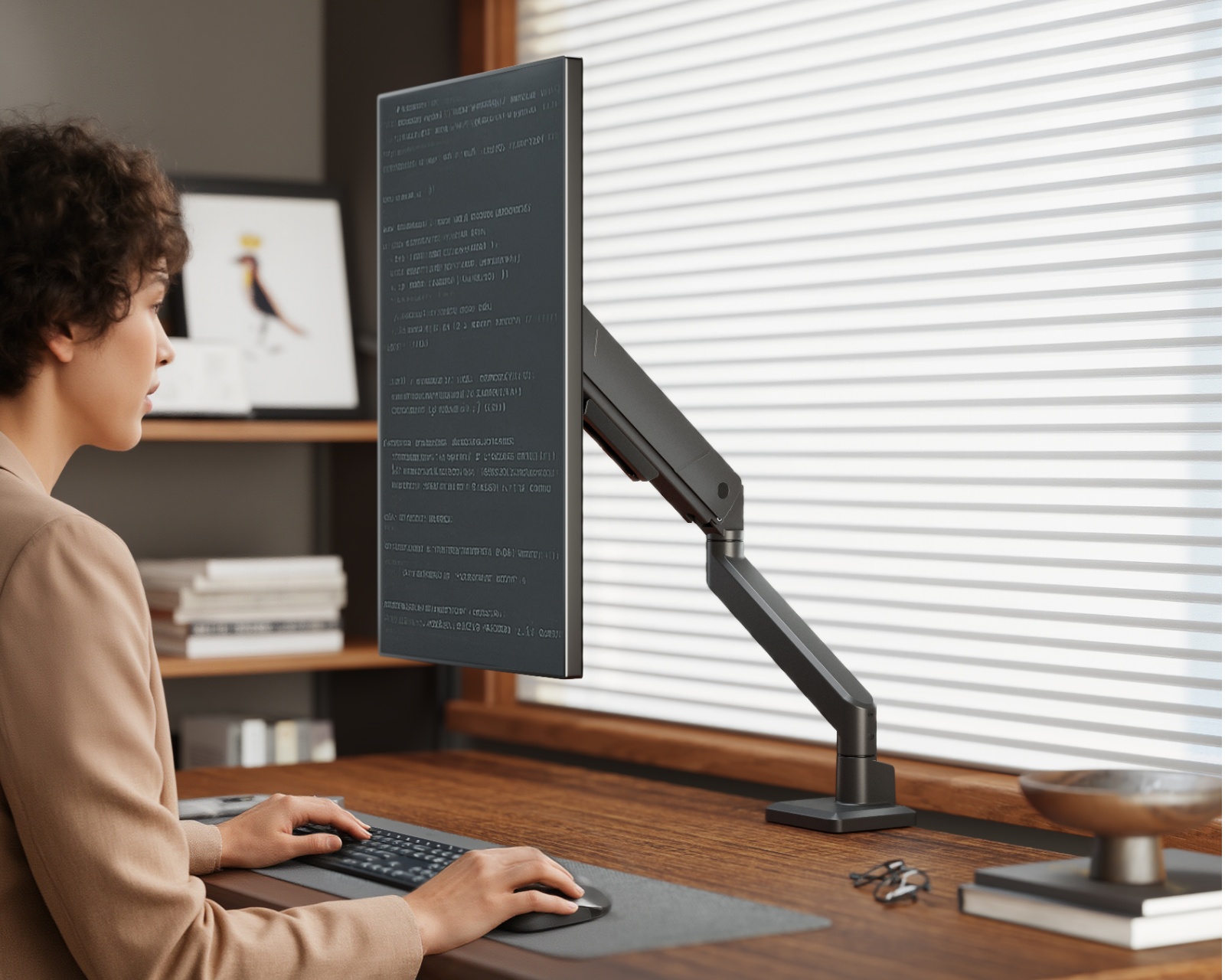 Raskas Skärmstativ MaxMountilta on käyttökelpoinen ratkaisu 17-45 tuuman näyttöjen kiinnittämiseen, maksimikuorman ollessa 16 kg. Näyttövarsi on valmistettu kestävästä metallista ja on suunniteltu tarjoamaan vakautta ja helppoa säätämistä. Nopeasti irrotettavan kiinnitysalustansa ja sisäänrakennetun jousikuormituksen ansiosta painon säätämiseksi, se helpottaa myös asennusta, sillä se voidaan kiinnittää täysin työpöydän yläpuolelta. Se soveltuu erityisesti käytettäväksi toimisto- ja teknisissä ympäristöissä.Näyttövarren rakenne varmistaa pitkäaikaisen kestävyyden ja vakauden korkealaatuisista materiaaleista. Se tarjoaa laajan liikkuvuuden, joka sisältää kallistuksen, pyörimisen, käännön ja korkeuden säädön optimoidakseen katselukulmat. Pyörimisen rajoitus estää varren liikettä näytöille tai seinille. Integroitu kaapelinhallinta auttaa pitämään työympäristön järjestyksessä ja minimoi kaapelien sotkeutumisen, mikä parantaa käytännön käyttöä entisestään.