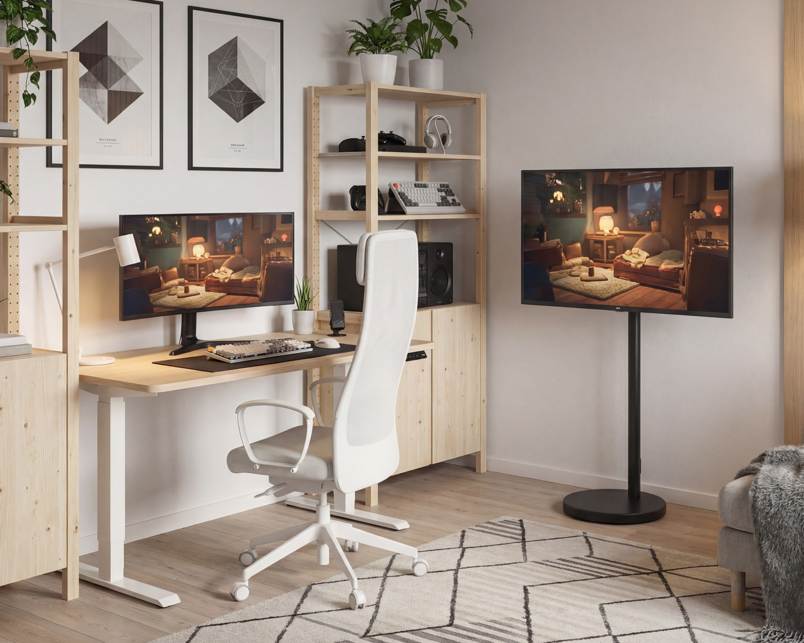 Luo tyylikäs peli- ja työpiste käyttäen innovatiivisia laitteita kuten tietokoneen näyttöjä, mikrofonikuulokkeita ja kaapeleita. Kaikki tuotteet ovat huolellisesti valittuja ja voimmekin hyvillä mielin suositella MaxMountin näyttötelineitä ja lisävarusteita käyttöösi. Telineen avulla hallitset näyttöjä paremmin ja voit asettaa ne helposti haluamaasi asentoon.