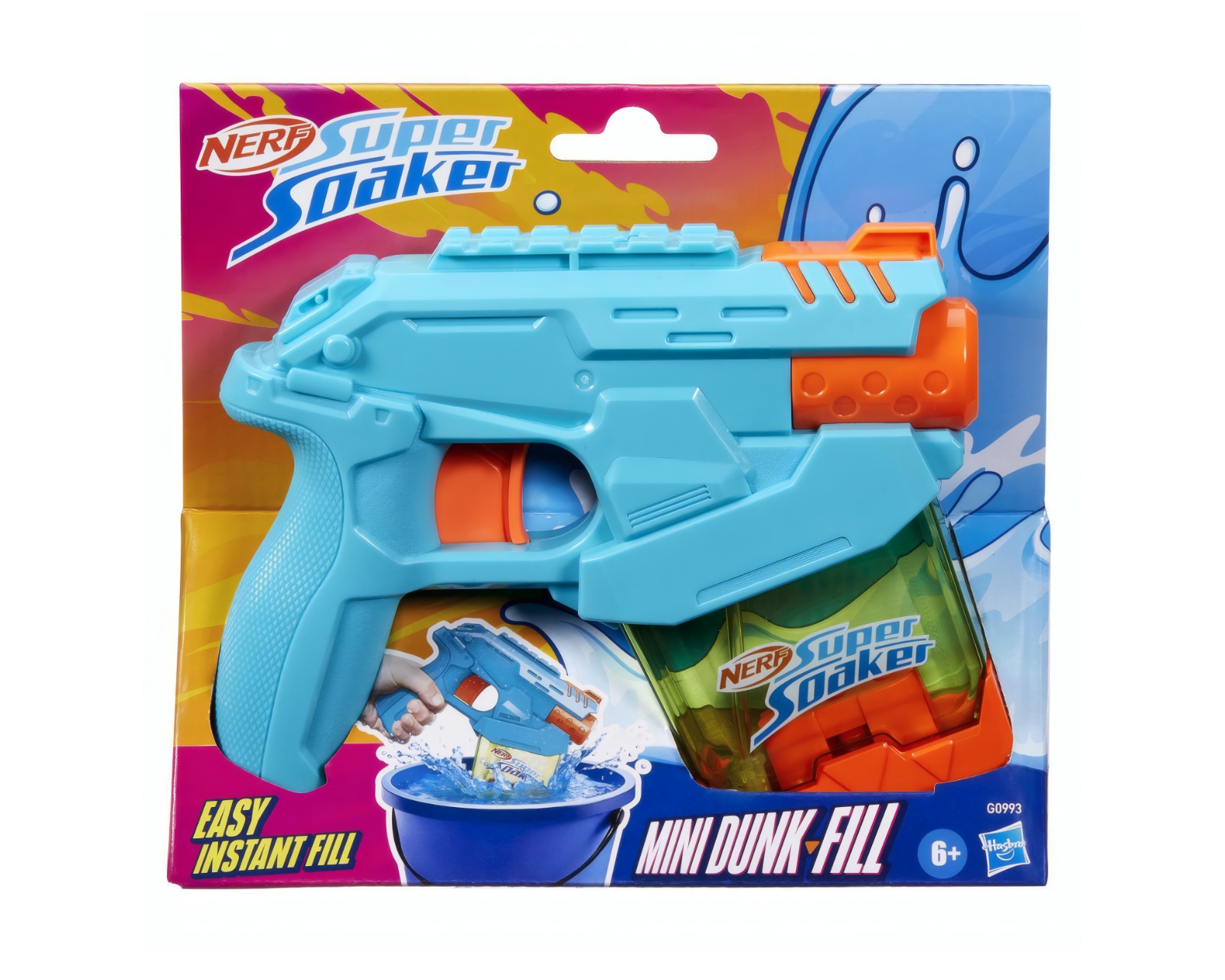Super Soaker Dunk Fill Mini on Nerfin vesipyssy, joka tarjoaa nopean täyttämisen välittömään vesileikkiin. Sen kapasiteetti on 100 ml ja siinä on läpinäkyvä säiliödesign helppoa täyttämistä ja visuaalista tarkkailua varten. Se on tarkoitettu ulkoilmaaktiviteetteihin ja vesileikkeihin, mikä tekee siitä ihanteellisen lapsille, jotka etsivät hauskaa ja aktiivista leikkiä.Tämä vesipyssy on suunniteltu käyttäjäystävällisyyttä silmällä pitäen. Täyttääkseen säiliön käyttäjä laskee sen vain veteen, ja se täyttyy välittömästi. Tämä nopea järjestelmä varmistaa, ettei leikkihetki keskeydy. Läpinäkyvä säiliö on käytännöllinen, jotta voidaan nähdä milloin on aika täyttää, mikä minimoi yllättävien keskeytysten riskin pelin aikana. Vettä ampumiseen käyttäjä puristaa vain liipaisinta.