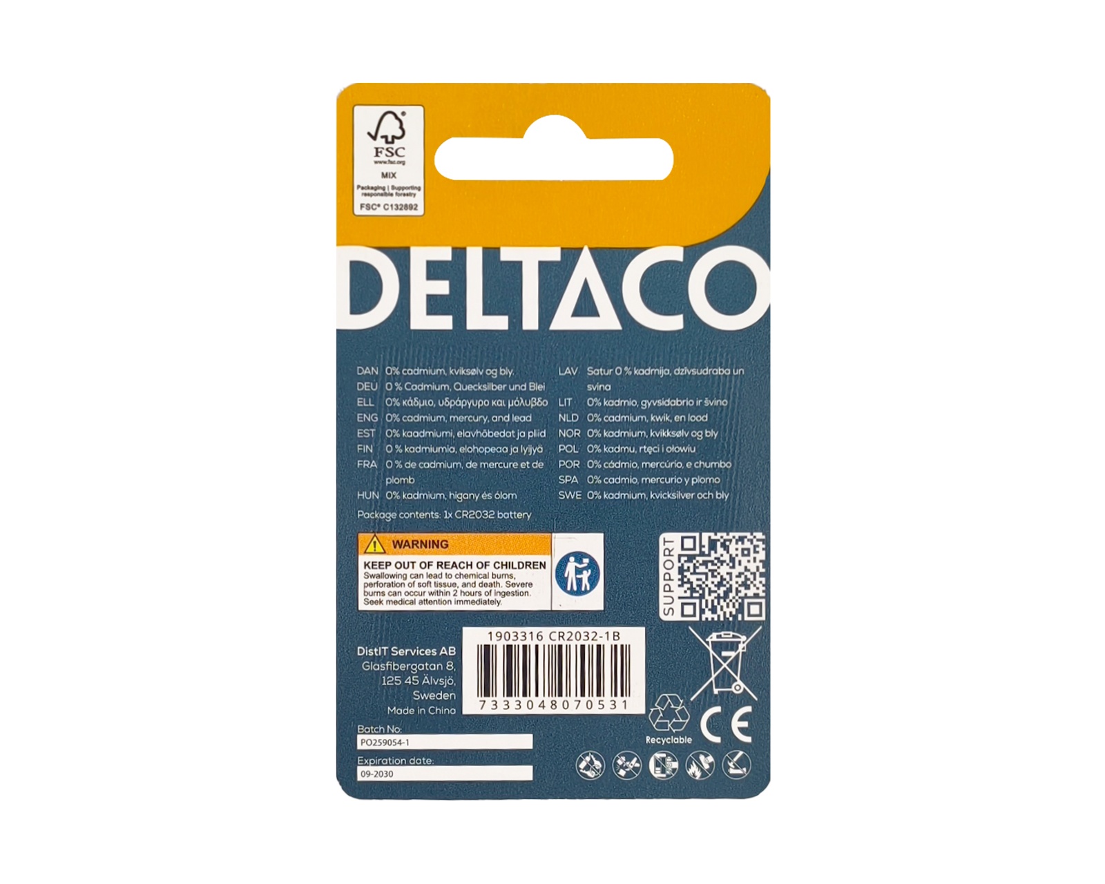 CR2032 Litium 1-pakka on akku kodin ja vapaa-ajan käyttöön. Tämä litiumakku on erityisesti suunniteltu tarjoamaan luotettavaa virtaa erilaisille laitteille, jotka vaativat kompaktia ja tehokasta energialähdettä. Pitkän käyttöiän ja korkean energiatiheyden kanssa CR2032 on erinomainen valinta esimerkiksi kauko-ohjaimille, kelloille ja pienille elektronisille laitteille.Akku on valmistettu korkealaatuisista materiaaleista, mikä varmistaa vakaat ja johdonmukaiset suorituskyvyt koko sen käyttöiän ajan. Kompakti muoto tekee asentamisesta helppoa rajatuissa tiloissa, ja luotettava kemiallinen koostumus tarjoaa matalan itsensä purkautumisnopeuden, mikä tarkoittaa, että sitä voidaan varastoida pidempiä aikoja ilman tehohävikkiä. CR2032-akku on myös lämpötilan kestävä, mikä tekee siitä sopivan käytettäväksi niin kylmissä kuin lämpimissä olosuhteissa.