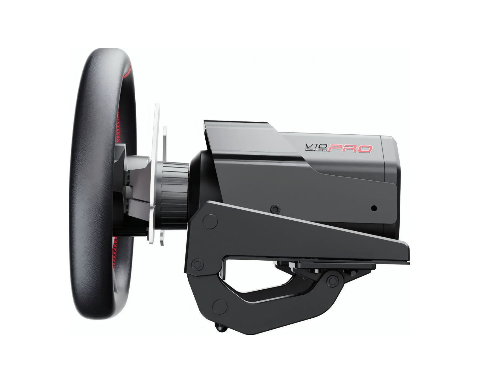 V10 Pro on PXN:n kilpasimulaattori, joka tarjoaa ammattilaispelikokemuksen sekä PC-, PS4-, Xbox One- että Xbox Series X|S-pelaajille. Ominaisuuksiin kuuluvat ergonominen D-muotoinen ohjauspyörä, jonka halkaisija on 270 mm, 17 ohjelmoitavaa painiketta ja F1-tyyliset vaihdevivut tarkkaa hallintaa ja reagointia varten. Setti on varustettu magneettihallitehosteilla varustetuilla polkimilla, jotka tarjoavat korkean tarkkuuden sekä kiihdytyksessä että jarrutuksessa, mikä yhdessä järjestelmän 3.2Nm suoravetoisena servomotori tuo realistisen tuntuman voimapalautteeseen. Älykäs lämpötilansäätö 2.0 varmistaa, että järjestelmä pysyy viileänä pitkien pelisessioiden aikana. Kiinnitysklemmarit ovat kompakteja ja sopivat helposti useimpiin työpöytiin, mikä tekee tästä paketista sopivan pieniin tiloihin, opiskelija-asuntoihin tai olohuoneisiin.V10 Pro on rakennettu korkealaatuisista komponenteista, jotka tarjoavat vakautta ja kestävyttä. Servomotorin suoraveto mahdollistaa nopeat ja tarkat liikkeet, jotka parantavat pelikokemusta. Polkimia voidaan säätää käyttäjän mukavuuden optimoimiseksi, ja ne on suunniteltu tarjoamaan tarkkaa reagointia Hall-teknologian avulla. Ohjauspyörä, jossa on useita ohjelmointi vaihtoehtoja, voidaan mukauttaa omistetun PXN-sovelluksen avulla, mikä antaa pelaajille mahdollisuuden räätälöidä kokemustaan.