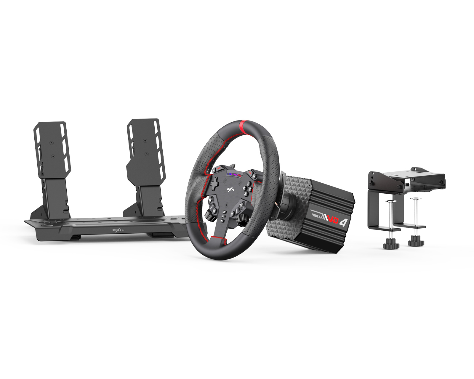 VD4 Bundle F on PXN:n kilpasimulaattori, joka sisältää suoraan ohjatun perustan, W AS -kilparattaan ja PD HM -jarru- & kaasupediilit. Se on suunniteltu PC:lle ja on yhteensopiva simulaattoreiden, kuten iRacing, Assetto Corsa ja F1-sarjan kanssa. Tuotteella on 12 kuukauden takuu ja ammattimainen asiakastuki. Se on tarkoitettu vain Windows 7–11:lle.PXN VD4 suoraan ohjattu perusta käyttää matalan inertiakertoimen servo-moottoria, jossa on 20 napaa, joka tuottaa jatkuvasti 4 Nm ja huipputilanteessa 5 Nm. Järjestelmässä on 24-bittinen magneettikooderi ja moniprosessori, jotka yhdessä Sense+-algoritmin kanssa varmistavat tarkan palautteen. Alumiinirunko ja älykäs lämpötilanohjausjärjestelmä pitävät suorituskyvyn vakaana pidempien peliistuntojen aikana.