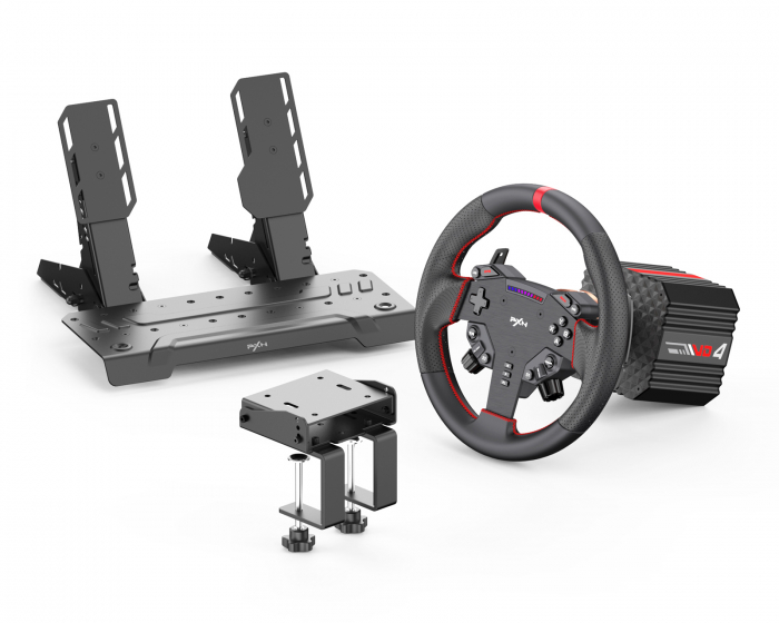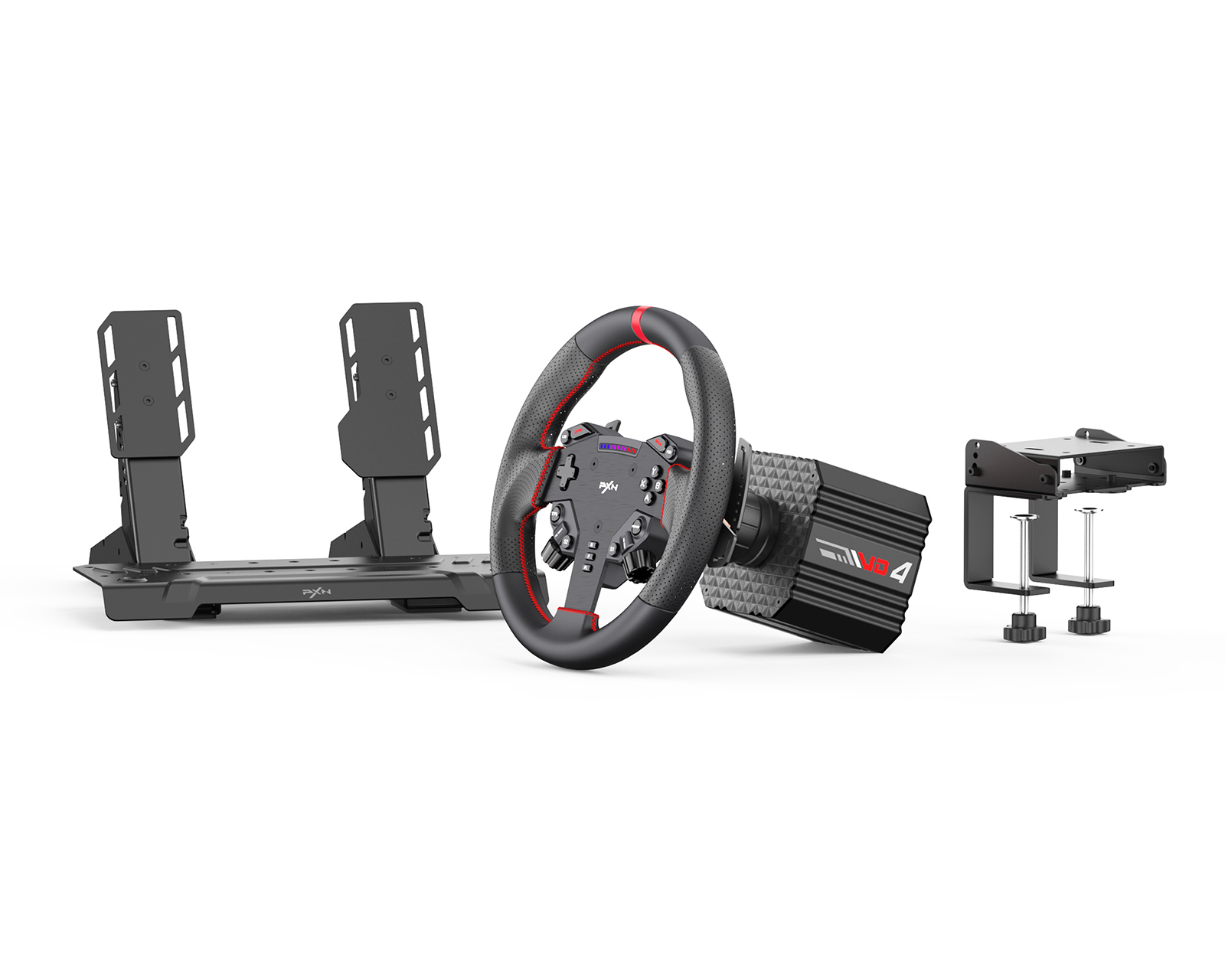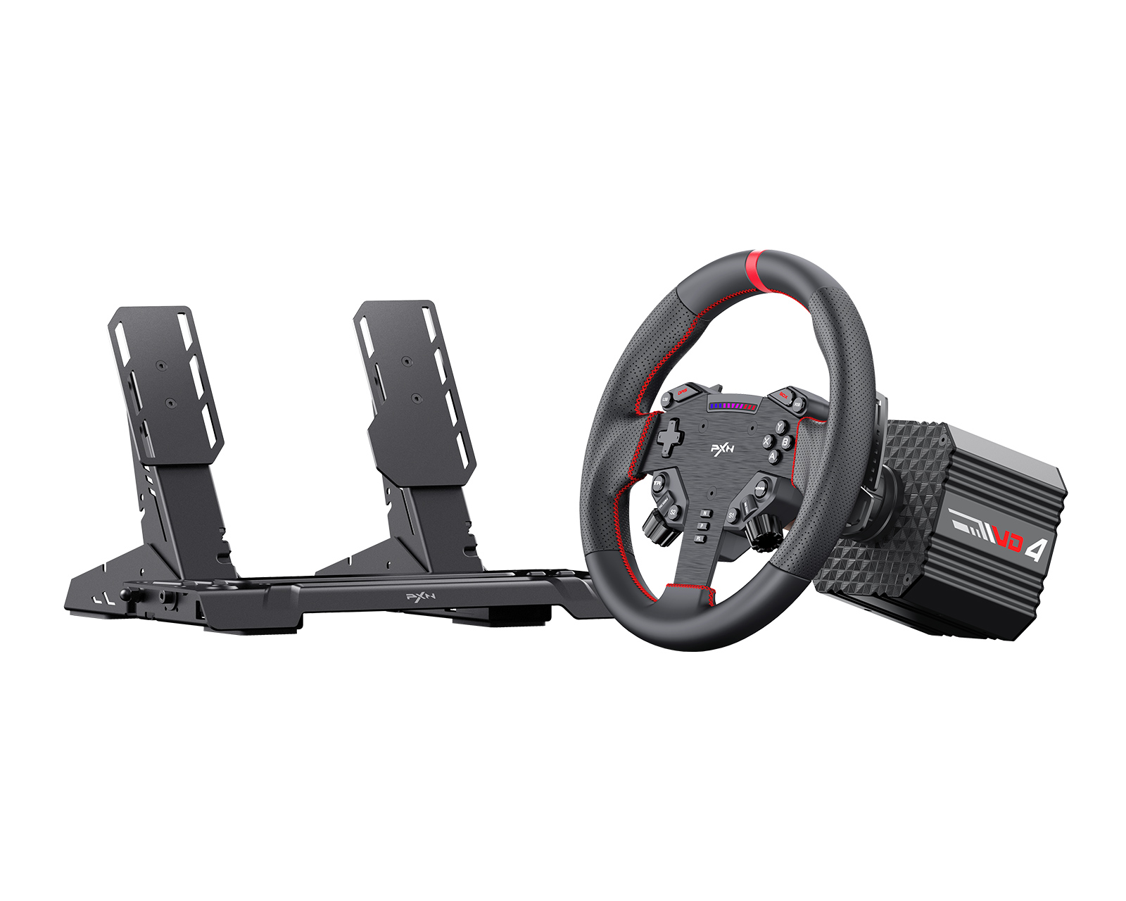VD4 Bundle F on PXN:n kilpasimulaattori, joka sisältää suoraan ohjatun perustan, W AS -kilparattaan ja PD HM -jarru- & kaasupediilit. Se on suunniteltu PC:lle ja on yhteensopiva simulaattoreiden, kuten iRacing, Assetto Corsa ja F1-sarjan kanssa. Tuotteella on 12 kuukauden takuu ja ammattimainen asiakastuki. Se on tarkoitettu vain Windows 7–11:lle.PXN VD4 suoraan ohjattu perusta käyttää matalan inertiakertoimen servo-moottoria, jossa on 20 napaa, joka tuottaa jatkuvasti 4 Nm ja huipputilanteessa 5 Nm. Järjestelmässä on 24-bittinen magneettikooderi ja moniprosessori, jotka yhdessä Sense+-algoritmin kanssa varmistavat tarkan palautteen. Alumiinirunko ja älykäs lämpötilanohjausjärjestelmä pitävät suorituskyvyn vakaana pidempien peliistuntojen aikana.