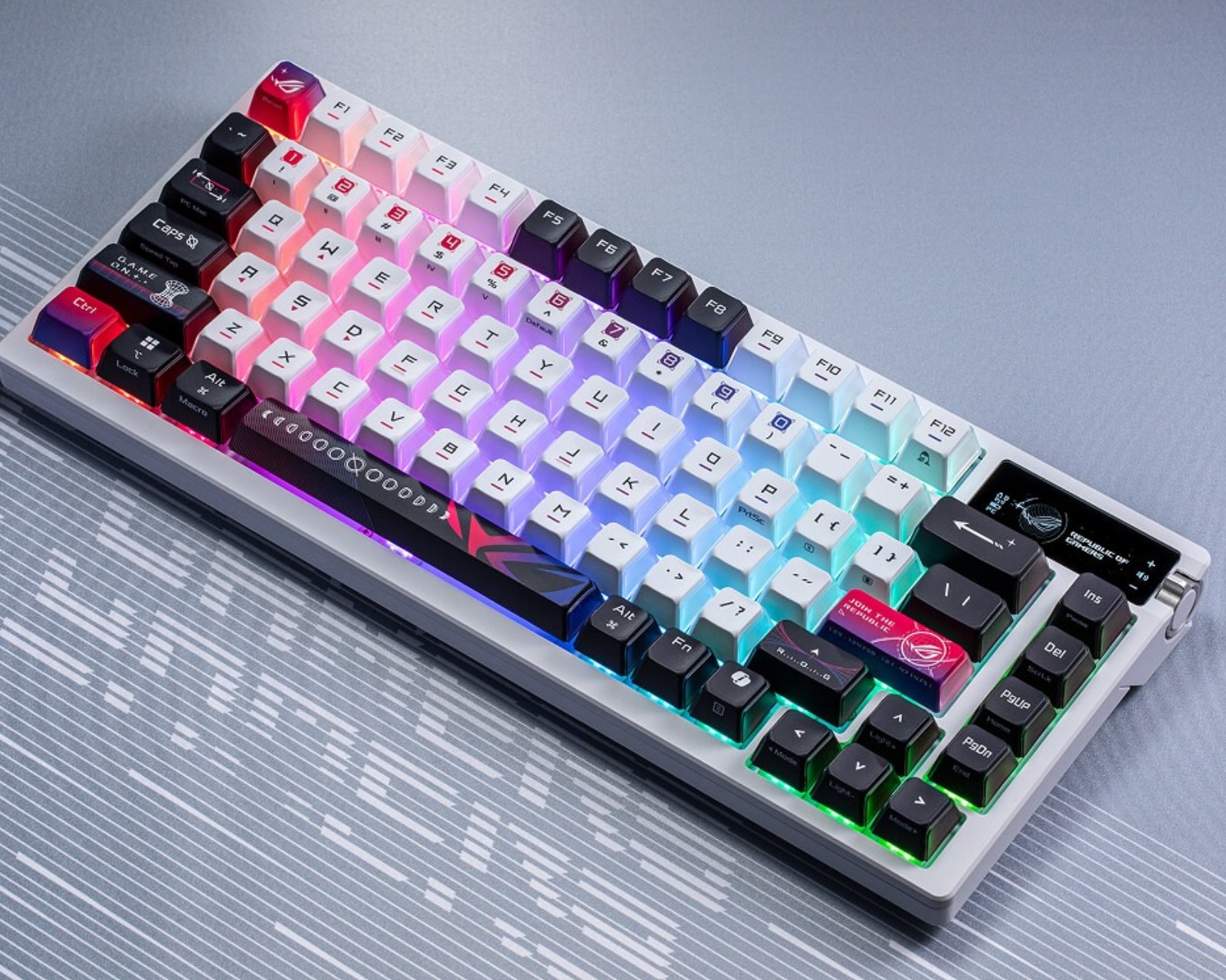 ROG Azoth X on 75% pelinäppäimistö Asukselta, joka tarjoaa langattoman yhteyden ja tri-mode -liitännän ROG SpeedNova -teknologialla. Se on varustettu hot-swappable ROG NX V2 mekaanisilla kytkimillä, mikä mahdollistaa nappien helpomman mukauttamisen ilman juottamista. Näppäimistö on suunniteltu teknologiaintoilijoille ja pelaajille, jotka arvostavat elit-tuntumaa kirjoittamisessa ja kehittynyttä toiminnallisuutta pelaamisessa.Tässä laitteessa on metallinen yläosa ja FR4-asennuslevy, jotka yhdessä tarjoavat joustavaa kirjoitustuntumaa, viiden kerroksen vaimennusvaahto ja kumikappaleen ripustus, joka tehokkaasti vaimentaa tärinää ja ääntä. Etu- ja takapuolen PCB on optimoitu yhteensopivaksi erilaisten keycapien ja kehittyneiden valaistusratkaisujen kanssa. Siellä on myös OLED-näyttö, joka näyttää järjestelmätietoja ja asetusten osoittimia, täydentäen sitä kolmiportaisella ohjauspyörällä intuitiivista toiminnallisuutta varten. Silikoninen rannetuki varmistaa mukavuutta ja tukea pidempään käyttöön.