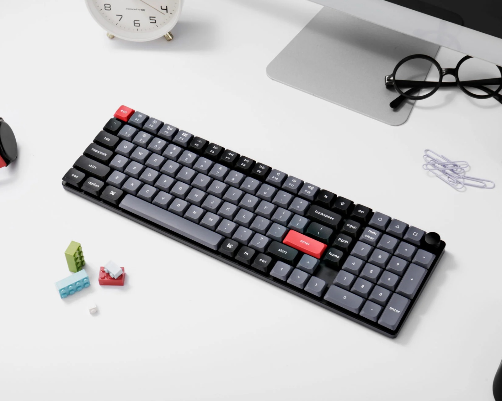 Keychron K17 Pro on langaton näppäimistö, jonka profiili on 96 % ja joka yhdistää suorituskyvyn ja tyylin erinomaisella tavalla. Kun pystyt ohjelmoimaan näppäimistön QMK/VIA:lla, voit mukauttaa työnkulkua juuri niin kuin haluat. Täydellinen sekä leikkiin että työhön.Valaise työtilaasi RGB-toiminnolla ja yhdistä helposti Bluetoothin kautta eri laitteisiin; Vaihtoehtoisesti voit käyttää USB-kaapelia vakaan yhteyden luomiseksi. Hotswap-toiminnon avulla voit helposti mukauttaa näppäimistön tarpeisiisi. Lisäksi K17 Prossa on nuppi äänitason sujuvaa säätöä varten.