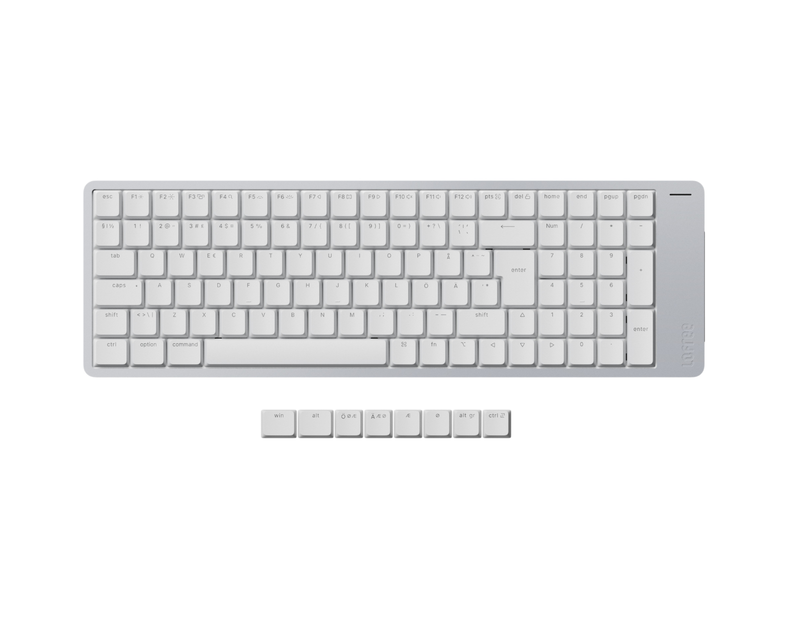 Flow 2 100 on Lofreen mekaninen näppäimistö, joka yhdistää matalaprofiiliset Kailh Surfer Linear -kytkimet eleganttiin anodisoituun alumiinimuotoiluun. Näppäimistö tarjoaa tri-mode-yhteyden USB-C:n, Bluetoothin ja 2.4GHz:n kautta, mikä antaa käyttäjälle suuren joustavuuden työasetuksissaan. Sisäänrakennetun kosketuspalkin avulla voi helposti säätää sekä äänenvoimakkuutta että näytön kirkkautta suoraan näppäimistöltä.Flow 2:n alumiinirakenne tarjoaa vankan ja tyylikkään lopputuloksen, kun taas edistynyt 205-gritin anodisointitekniikka varmistaa sormenjälkien kestävyyden ja tarjoaa miellyttävän taktiilisen kokemuksen. Uudet Cloud Series -kytkimet tarjoavat poikkeuksellisen sujuvuuden kirjoittamisessa, ja jokainen näppäinpainallus rekisteröityy korkealla tarkkuudella vähennetyn toleranssin ansiosta, joka on 0,04 mm. Sisäänrakennettu kumijalkajärjestelmä ja viiden kerroksen vaimennusmateriaaleista koostuva rakenne edistävät hiljaista ja miellyttävää käyttöä pidempien istuntojen aikana.