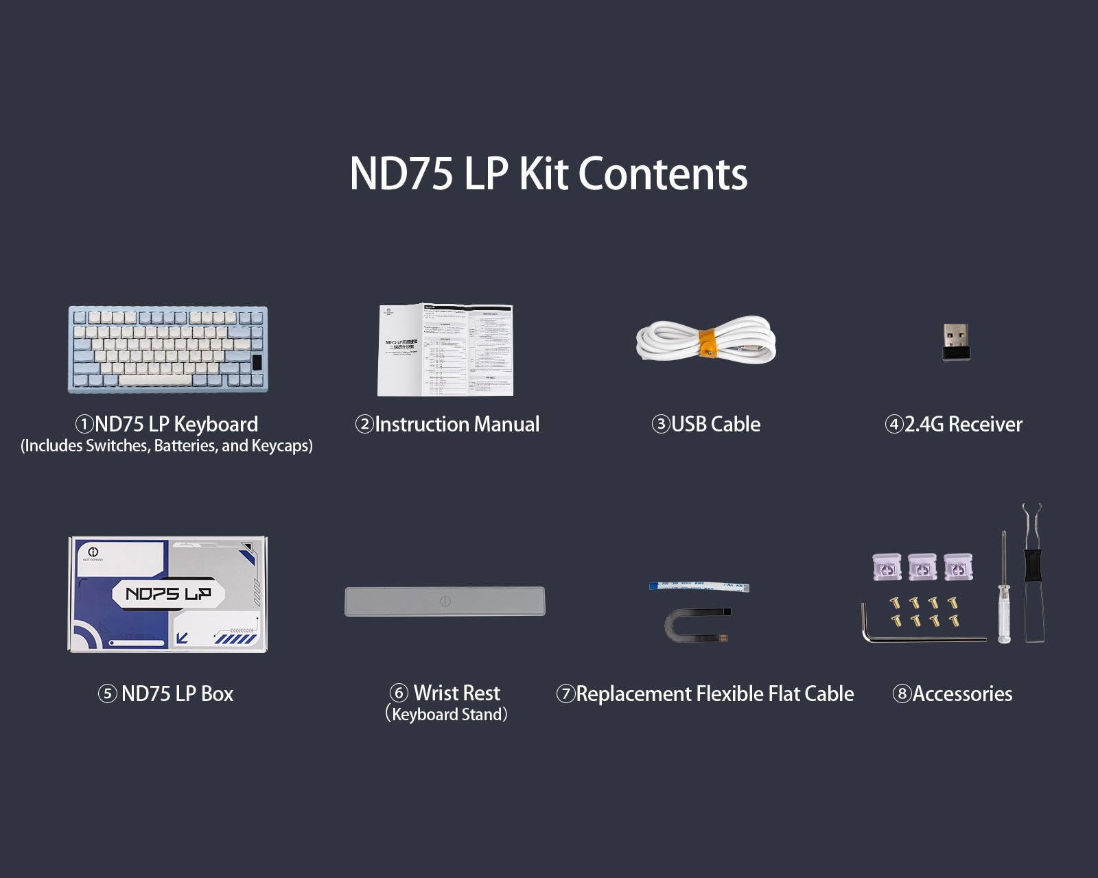 Koe maailman ensimmäinen matalaprofiilinen näppäimistö, jossa on CNC-jyrsitty alumiinirunko, magneettinen kiinnitysrakenne, elävät värit ja LCD-näyttö. ND75 LP on aloittelijaystävällinen, ja se on valmiiksi koottu kestävillä kaksinkertaisilla PBT-näppäimillä ja matalaprofiilisilla kytkimillä tyylikkään kirjoituskokemuksen takaamiseksi. Sen 1,2 mm:n kolmitilapiirilevy ja kaksi 1800 mAh:n akkua tarjoavat joustavuutta sekä kotona että tien päällä.- CNC-jyrsitty alumiinirunko anodisoiduissa tai e-pinnoiteväreissä.
