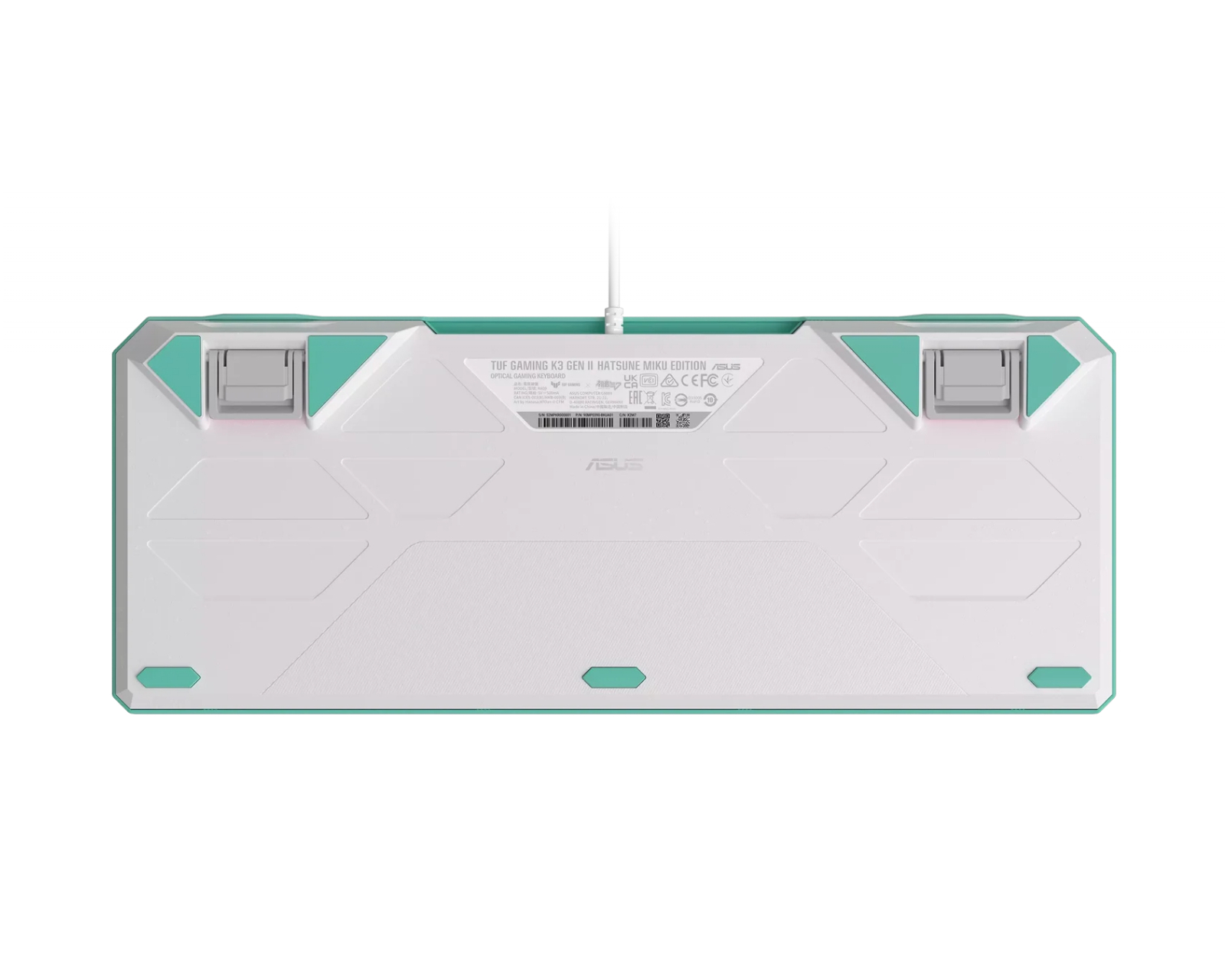 ASUS TUF Gaming K3 Gen II Hatsune Miku Edition on näppäimistö, joka on suunniteltu sekä pelaajille että Hatsune Miku -faneille. Kompaktin 98-näppäimisen ja Armoury Craten kautta säädettävän taustavalaistun RBG-valaistuksen ansiosta se tarjoaa sekä tyyliä että suorituskykyä.Optiset mekaaniset kytkimet, joissa on haamujen esto, takaavat nopean ja tarkan vasteen, kun taas silikonitiivisteet ja vaimennusvaahto vähentävät melua sujuvamman kirjoituskokemuksen takaamiseksi. Näppäimistö on IP57-luokiteltu vedeltä ja pölyltä, mikä tarjoaa kestävää laatua. Irrotettava ylälevy tekee sen puhdistamisesta ja huoltamisesta helppoa.