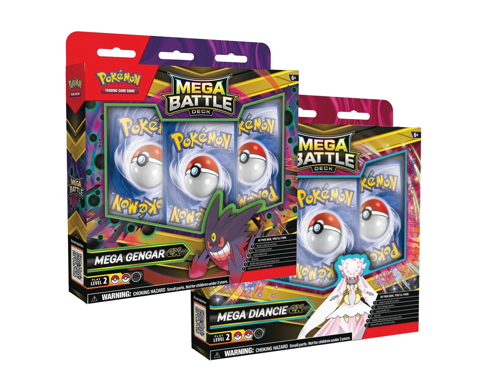 Battle Deck Ex Gengar/Diancie Pokemonista sisältää 60 keräilykorttia, vahinkolaskurin, metallisen kolikon, korttilaatikon ja kaksipuolisen pelimatto.Koodikortti mahdollistaa pelaamisen tämän pakan kanssa verkossa, mikä lisää digitaalisen ulottuvuuden peliin.