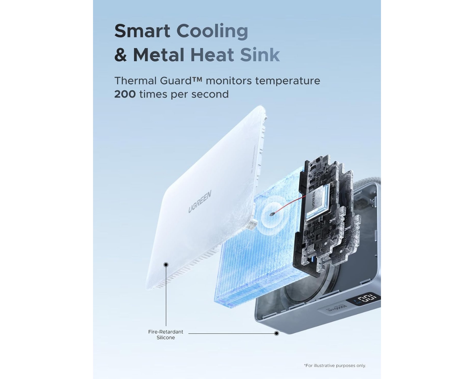 MagFlow Qi2.2 25W on monitoiminen powerbank UGREENilta, jonka kapasiteetti on 20000mAh. Se tarjoaa langatonta latausta enimmäisteholla 25W, mikä tekee siitä yhteensopivan MagSafe- ja Qi2-standardien kanssa. Sisäänrakennettu USB-C-kaapeli mahdollistaa sekä lataamisen että virransyötön, enimmäislähtöteholtaan 100W. Powerbank on varustettu N52-magneeteilla, jotka tarjoavat vahvan ja tarkan magneettisen kiinnityksen, varmistaen, että laite pysyy paikoillaan latauksen aikana.Siinä on useita lataustiloja, mukaan lukien sekä langaton että langallinen lataus, ja se on suunniteltu monipuoliseksi, mikä tekee siitä sopivan sekä älypuhelimen käyttäjille että tietokoneen käyttäjille. USB-C-porttien kautta tukema pikalataus kykenee lataamaan laitteita, kuten MacBookia, iPadia ja iPhonea tehokkaasti. Turvaominaisuudet, kuten ylivirta-, ylijännite- ja oikosulkusuojat, tekevät siitä turvallisen valinnan matkustamiseen.