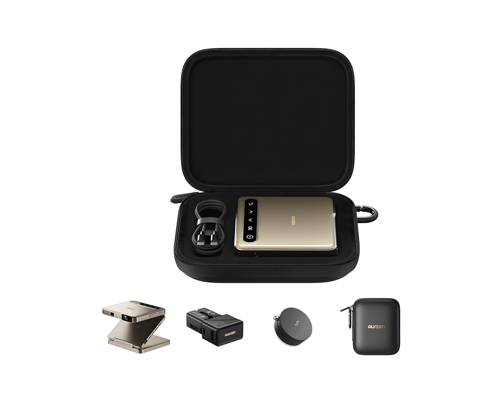 Zip Projektor Set on Aurzenin valmistama kannettava projektori, joka on suunniteltu tarjoamaan korkealaatuista elokuvakokemusta missä tahansa. 720p-resoluutiolla, 100 ANSI lumenin kirkkaudella ja 300:1 kontrastisuhteella se luo teräviä ja yksityiskohtaisia kuvia sekä sisä- että ulkotiloissa. Lisäksi siinä on sisäänrakennettu 5000 mAh akku pitkäkestoista käyttöä varten ja se tukee PD-nopeaa latausta.Projektori on rakennettu modernia mediankulutusta varten ja tarjoaa pystysuoran koko näytön tilan, välittömän peilaamisen ilman Wi-Fi-yhteyttä sekä laajan yhteensopivuuden iOS-, Android-, Windows- ja macOS-laitteiden kanssa. CastPlay-toiminto mahdollistaa suoratoiston suosituista alustoista kuten Netflix, Disney+, YouTube ja Prime Video (adapteri myydään erikseen). Käännettävä muotoilu tekee siitä helpon sijoittaa seinille, kattoon tai tasaisille pinnoille, mikä poistaa tarvetta jalustalle.