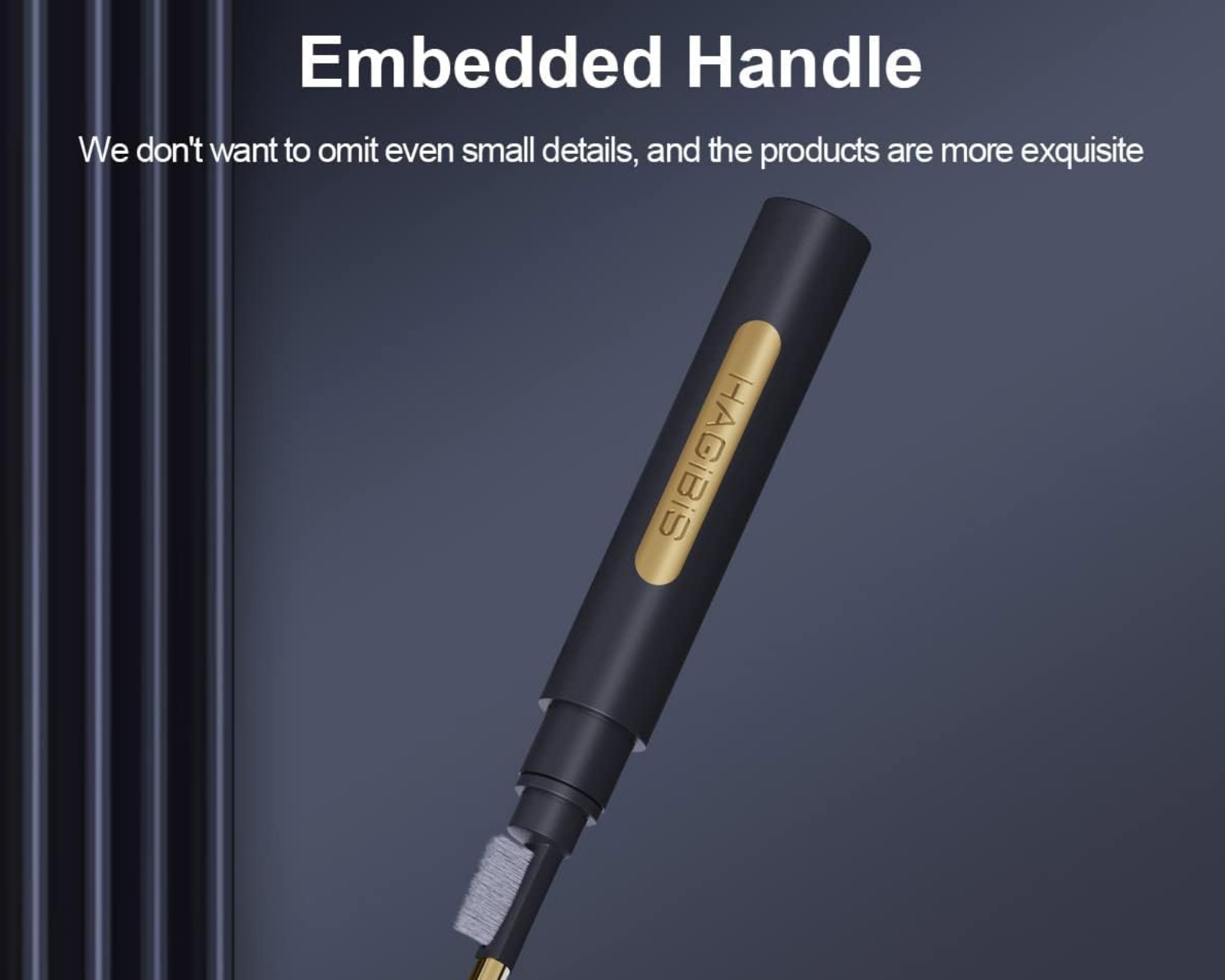 Hagibis puhdistuskynä CP01 on puhdistustyökalu AirPod sekä muihin Bluetooth-kuulokkeisiin ja niiden latauskoteloihin. Se tarjoaa monipuolisen muotoilun kolmen työkalun kanssa: pehmeä flockaus-sieni, korkean tiheyden harja sekä metallikynä. Tuote on valmistettu tehokkaaseen pölyn ja lian poistamiseen herkiltä pinnoilta kuulokkeissa ja kotelossa. Se on kevyt ja kompakti mitoiltaan 10,8 x 1,3 x 1,3 senttimetriä ja painaa vain 18 grammaa.Puhdistuskynä on muotoiltu erillisellä designilla, jossa on kaksoispäät, mikä mahdollistaa kohdennetun puhdistamisen vaihtelevilta pinnoilta. Flockaus-sieni on hellävarainen ja tehokas langattoman latauskotelon puhdistamiseen. Harja on korkean tiheyden ja erikoistunut lian poistamiseen ääniliitännöistä ja muista herkkien alueista. Kynän metalliosa helpottaa kovaan pölyyn ja likaan puhdistamista, joka voi jäädä kiinni vaikeasti saavutettavissa kohdissa. Upotettu kahva antaa lisäkontrollia käytön aikana.